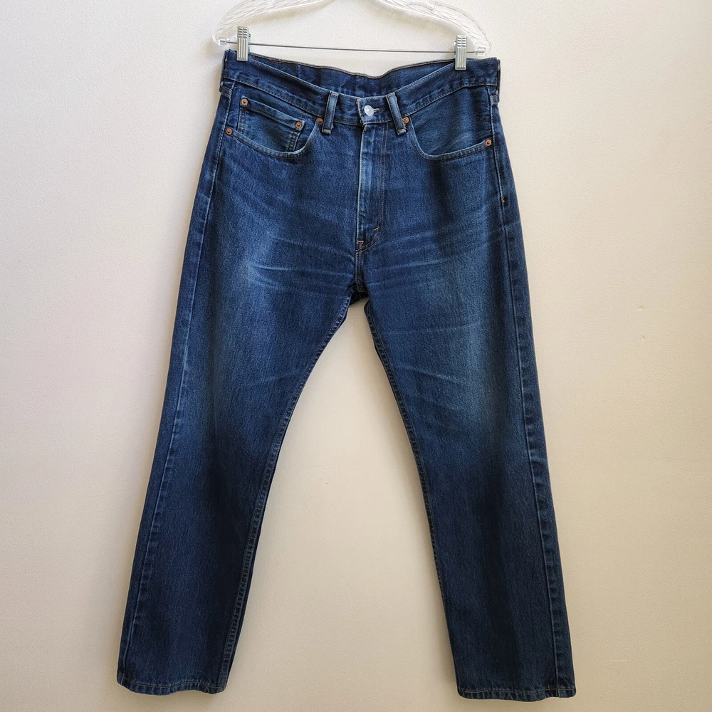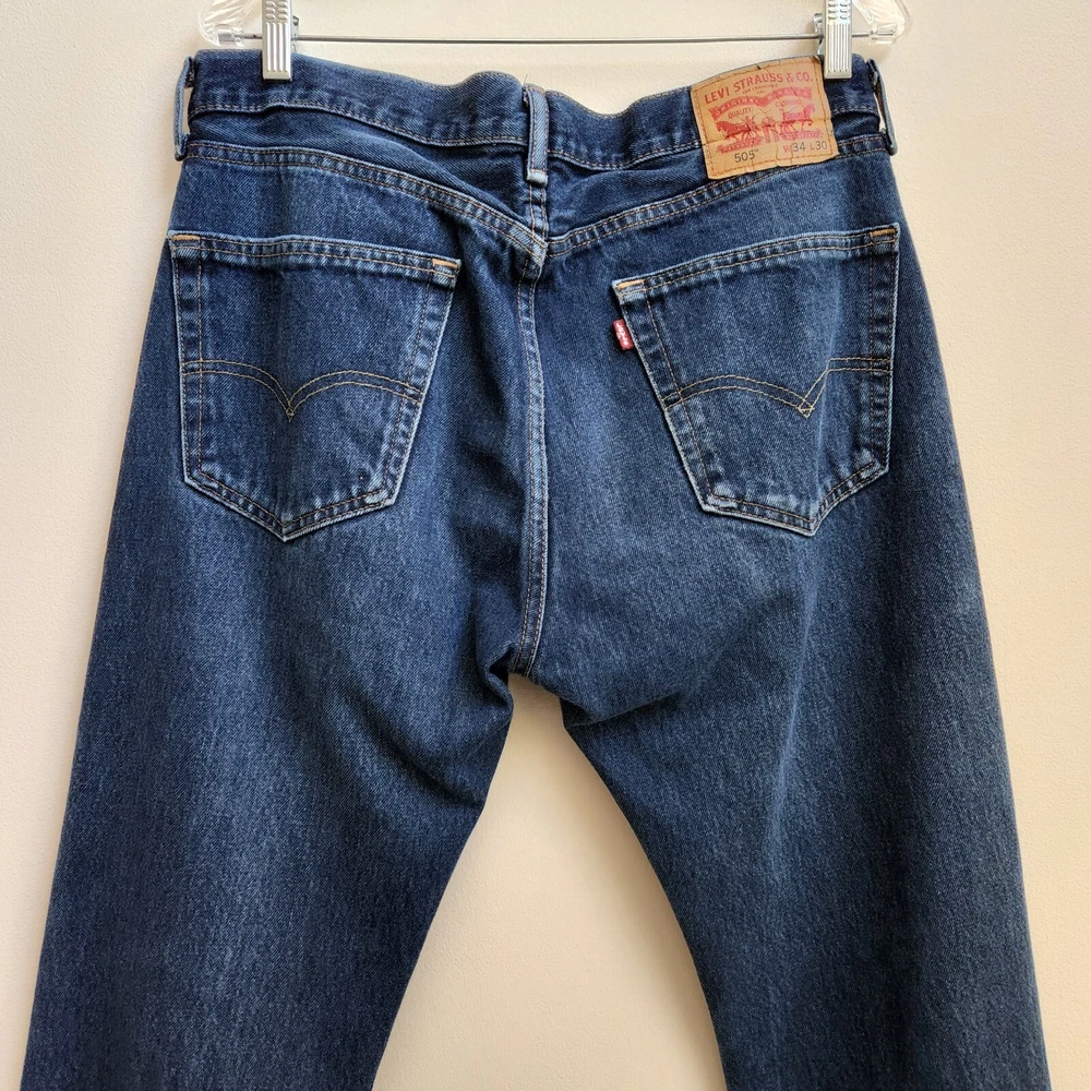 Features: Pockets Model: Levi's 505 Seller Notes: “Very Good Pre-Owned Condition” Personalize: No Suspender Buttons/Belt Loops: Belt Loops Pattern: Solid Size: 34 Season: Fall, Spring, Summer, Winter Material: No Material Tag Accents: Button Distressed: No Waist Size: 34 1/2 in Color: Blue Department: Men Country/Region of Manufacture: Unknown Garment Care: Machine Washable Style: Straight Vintage: No Fabric Type: Denim Brand: Levi's Leg Opening: 8 in Inseam: 29 1/4 Size Type: Regular Type: Jeans MPN: Does not Apply Rise: Mid (10-12 in) Closure: Zip Product Line: Levi's 505 Fabric Wash: Medium Fit: Regular Handmade: No Pocket Type: 5-Pocket Design Theme: American