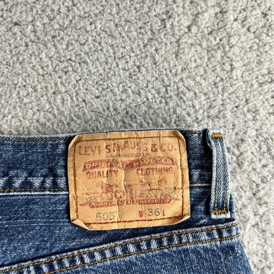 Levis 505 Shorts Mens 36 Blue Denim Jean Bermuda Straight Regular Dark Outdoor Condition: Pre-owned. Good condition. Please see all photos for condition and measurements. Please let us know if you have any questions. Thanks for shopping with us.
