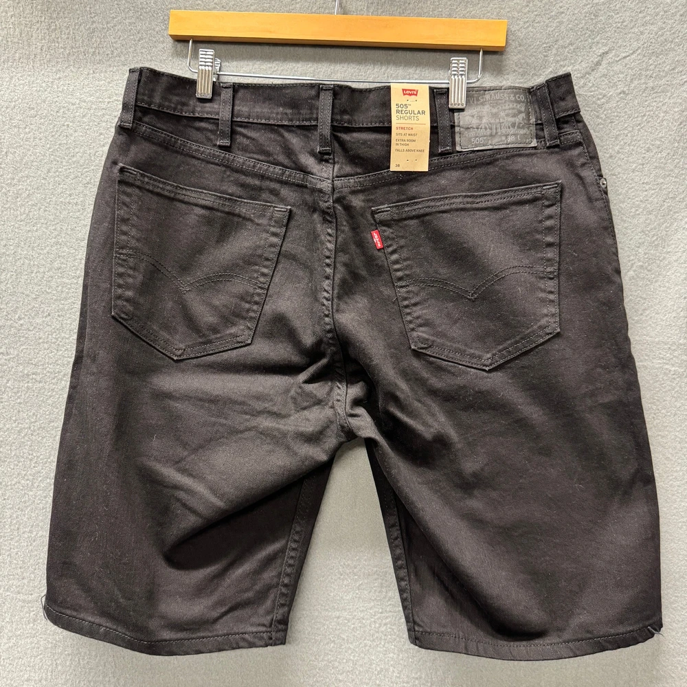 Levi's 505 Shorts Mens 38 (38x10 ACTUAL) Black Denim Regular Fit Jorts NEW Brand new with tags, see all pictures for views. •Waist: 38" •Inseam: 10" •Rise: 12" Ships out same day or next open postal day. Thank you for your purchase, we appreciate you!