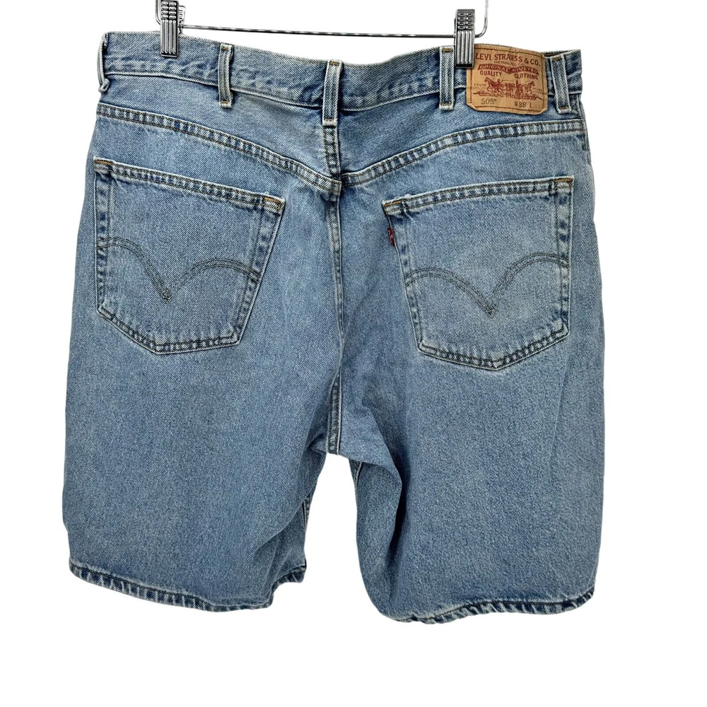 Levi's 505 Shorts Mens 38 (38x9 ACTUAL) Blue Denim Jorts Regular Fit Good condition, SMALL HOLE ON FRONT RIGHT, FADED WASH, see all pictures for views. •Waist: 38" •Inseam: 9" •Rise: 13" Ships out same day or next open postal day. Thank you for your purchase, we appreciate you!