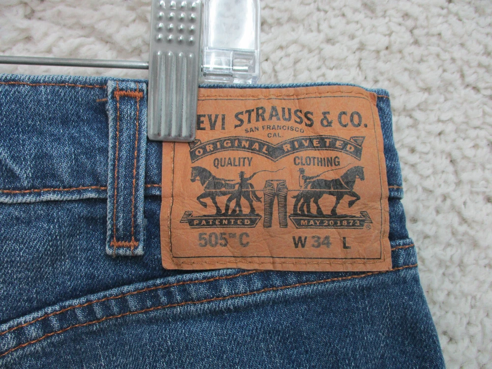 Levis 505C Shorts 34 Mens Blue Denim Casual Jeans Cutoff Orange Tab Dark Wash L2
