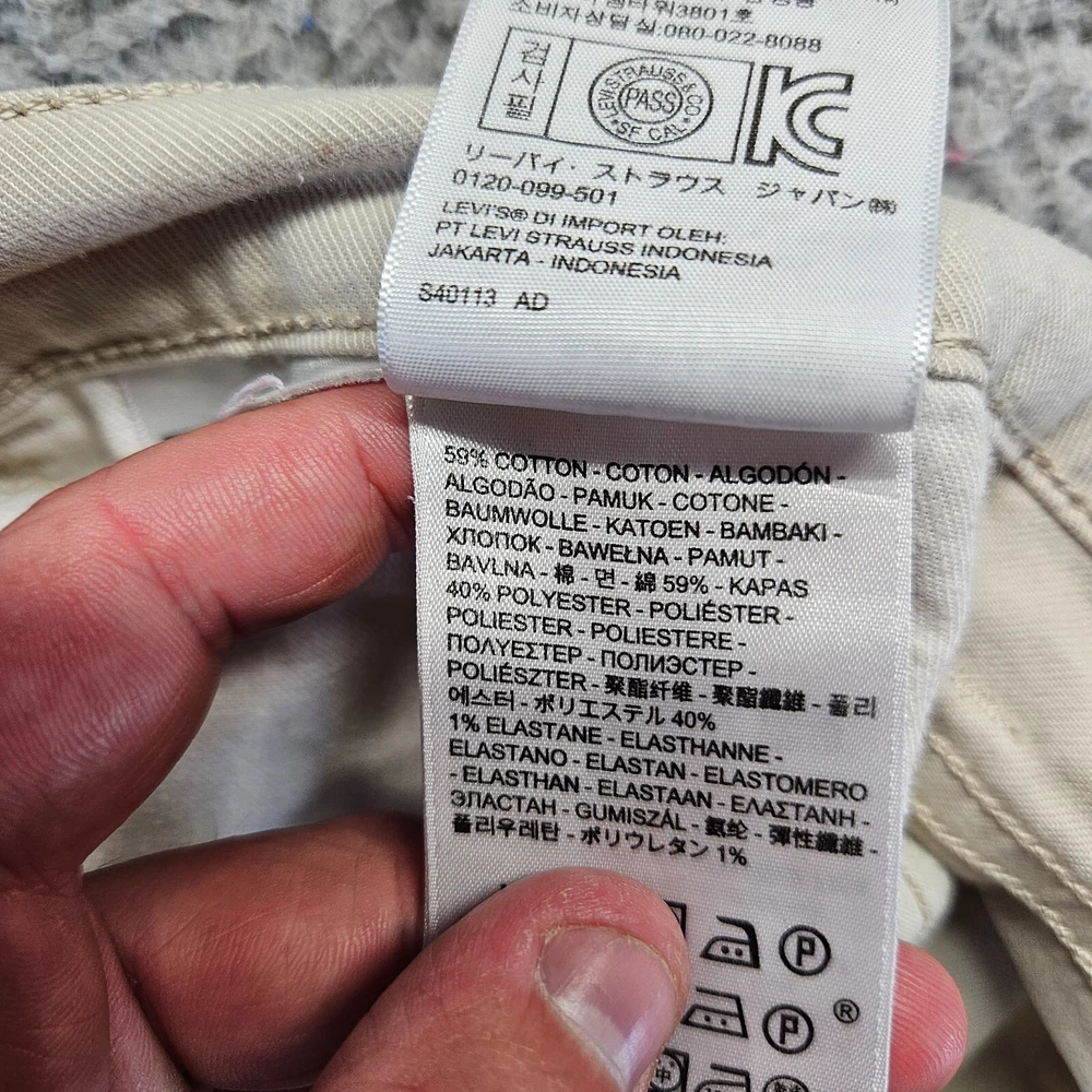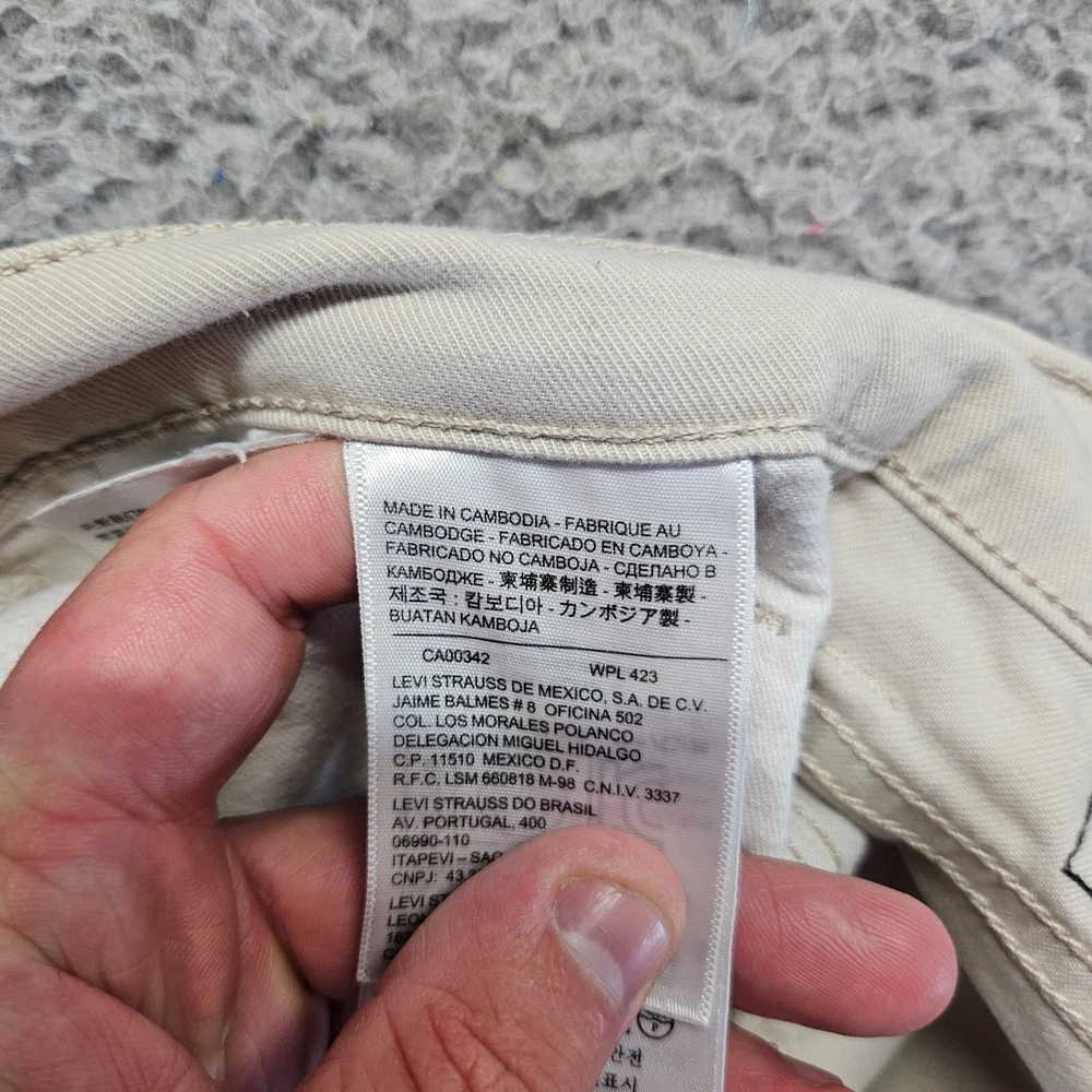 Handmade: No Inseam: 28 in Personalize: No Country/Region of Manufacture: Cambodia Pattern: Solid Size Type: Regular Type: Pants Material: Cotton Blend Closure: Zip Size: 31 Fit: Slim Model: Levi's 511 Rise: Mid (10-12 in) Brand: Levi's Occasion: Casual, Travel Pocket Type: 5-Pocket Design Season: Fall, Spring, Summer, Winter UPC: Does not apply Garment Care: Machine Washable Waist Size: 32 in Color: Beige Front Type: Flat Front Department: Men Leg Style: Straight gtin13: Does not apply Style: Chino