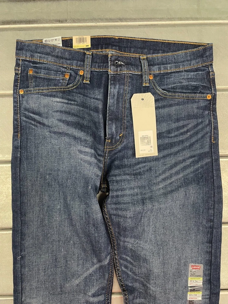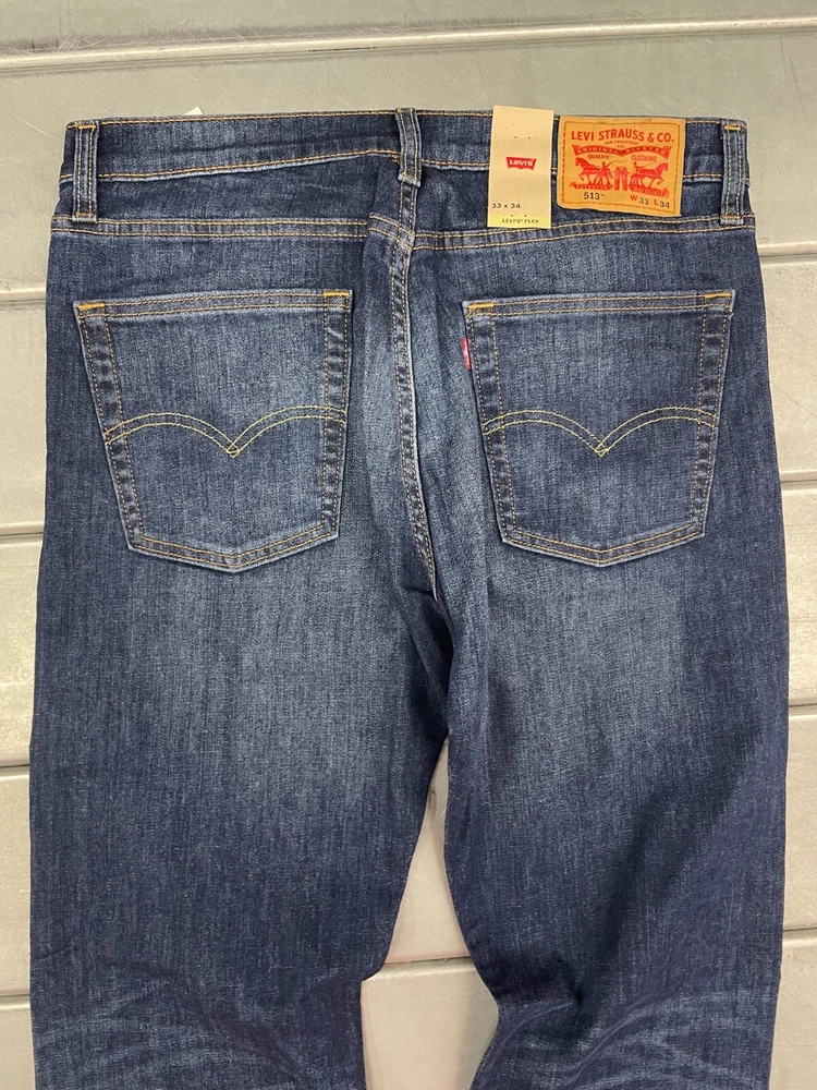 Levis 513 Slim Straight Jeans Mens 33x34 Blue Stretch NWT 5-Pocket Design, Mid Rise Measurements: Waist across front approx: 17 Inches Flat Lay Inseam approx: 33.5 Inches Flat Lay NWT please see pic for details and measurements Z9