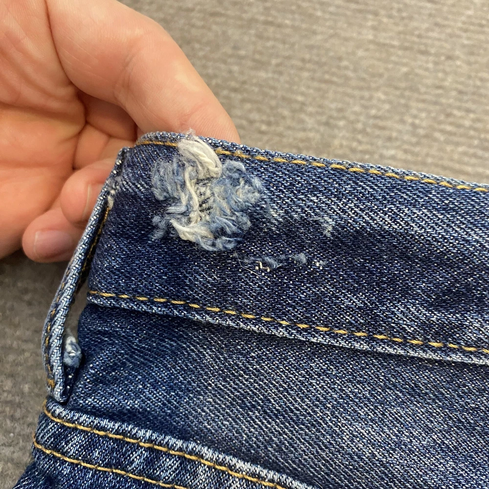 Jeans have some distressing from wear. See all pictures for measurements and conditioning feel free to ask any questions. Check out our store Retro-Lab Thousands of similar items. Shipping is set to automictically discount on orders of more than one. $1.50 for each item after the first. We do our absolute best to try and document and photograph any flaws in the items, in case we miss something we are happy to accept returns. 30 day free returns on all clothing items, for any reason. All returns are free to you, but expensive to us so please review the measurements prior to purchase. Item measurements are approximate and located at the end of the photos. Pre-owned clothing sizing can change due to washing and wear. Offers can not be combined with coupons. All Items will be shipped with a tracking # for your verification. We ship out daily, so you can expect fast delivery! If you have any questions at all please email us.