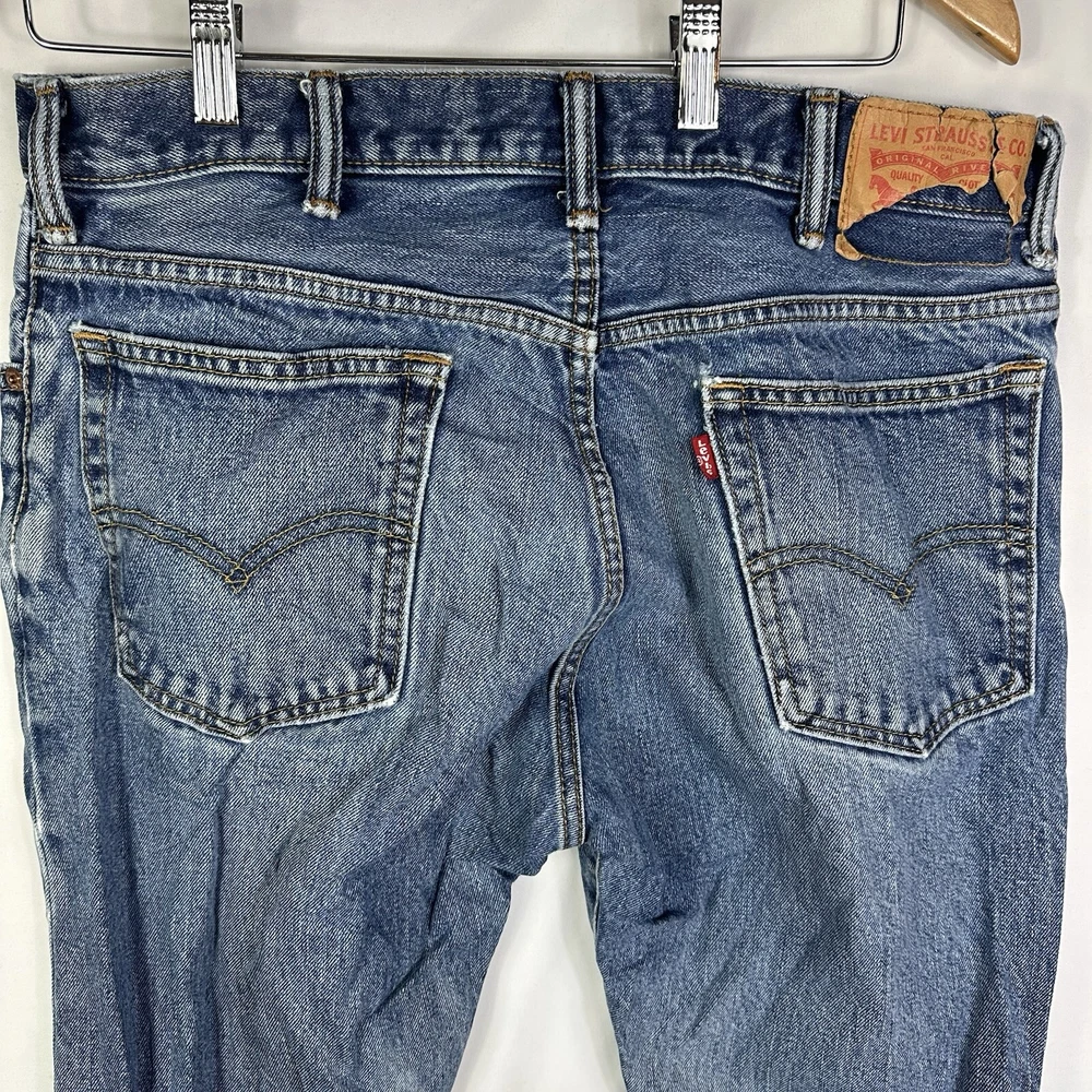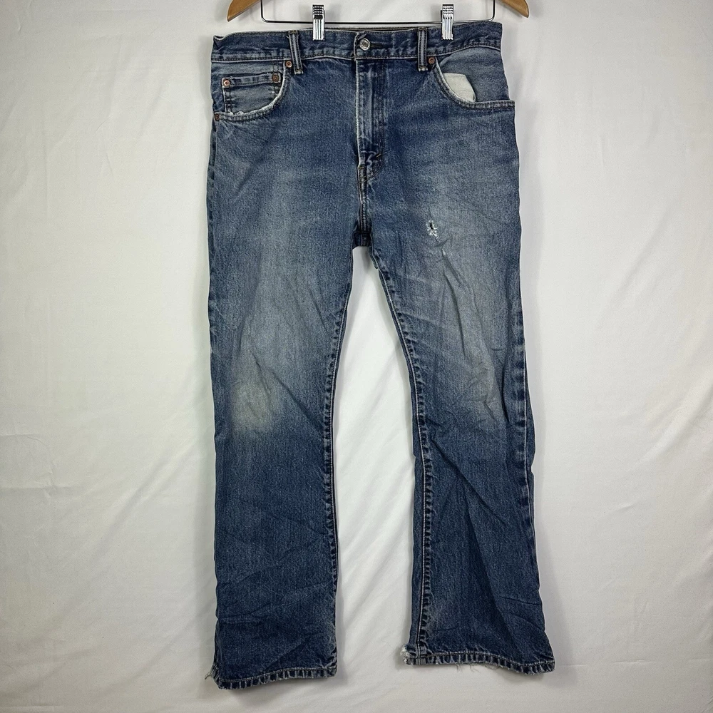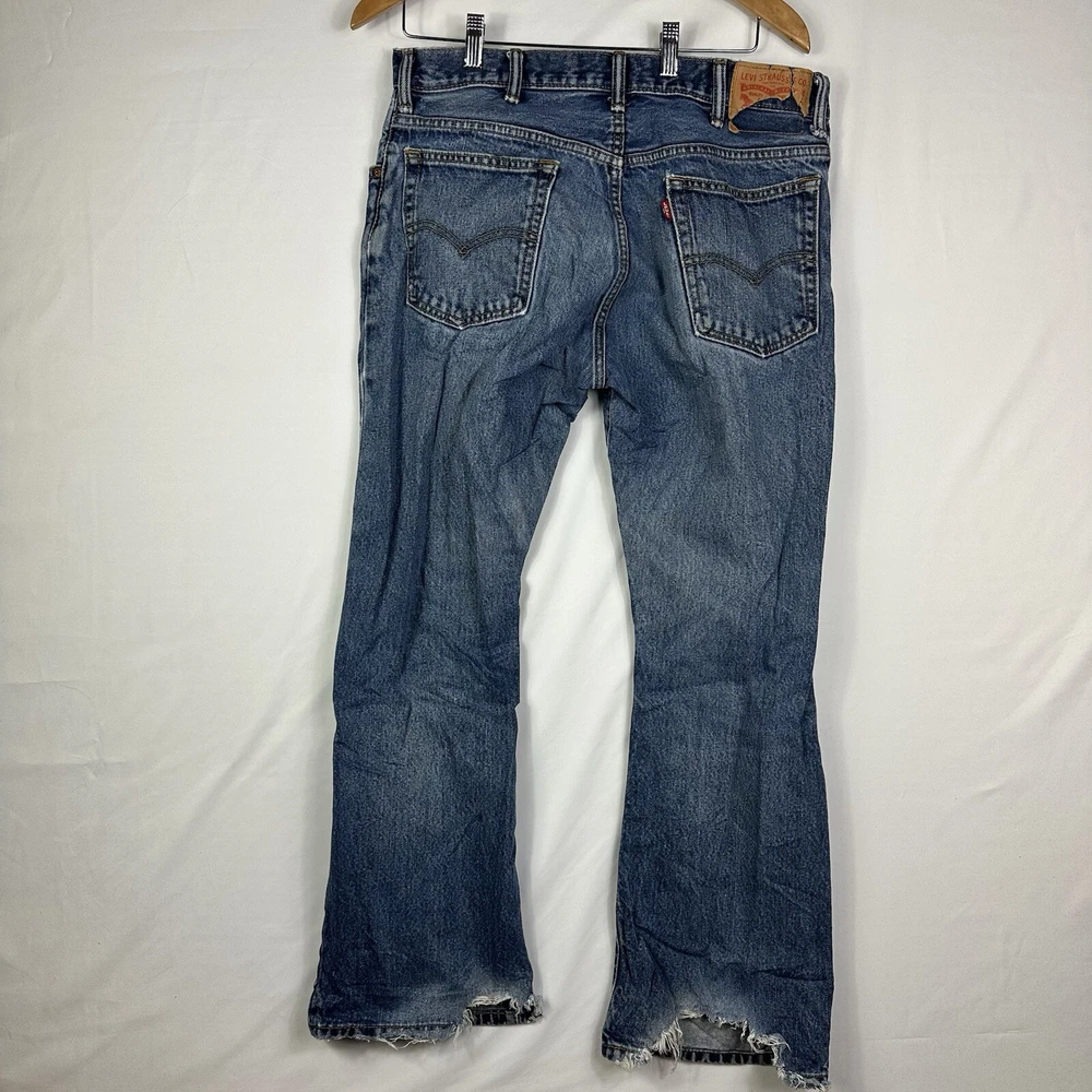 Good condition. Wear by the ankles. Send questions and offers. Ships with USPS Advantage. Upgrade your wardrobe with these stylish Levi's 517 jeans. The blue light wash denim and relaxed fit make them perfect for any casual occasion. Featuring a zip closure, button accents, and a 5-pocket design, these jeans provide both comfort and functionality. Made with high-quality cotton fabric and machine washable for easy care, these jeans are a must-have for any fashion-conscious man. The bootcut style and mid-rise waist provide a flattering look for all body types. Whether you're going for a cowboy or 90s theme, these Levi's 517 jeans are the perfect addition to your outfit.