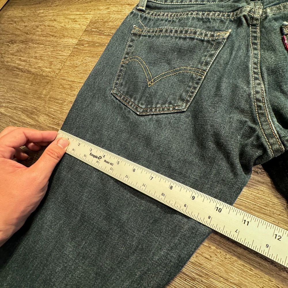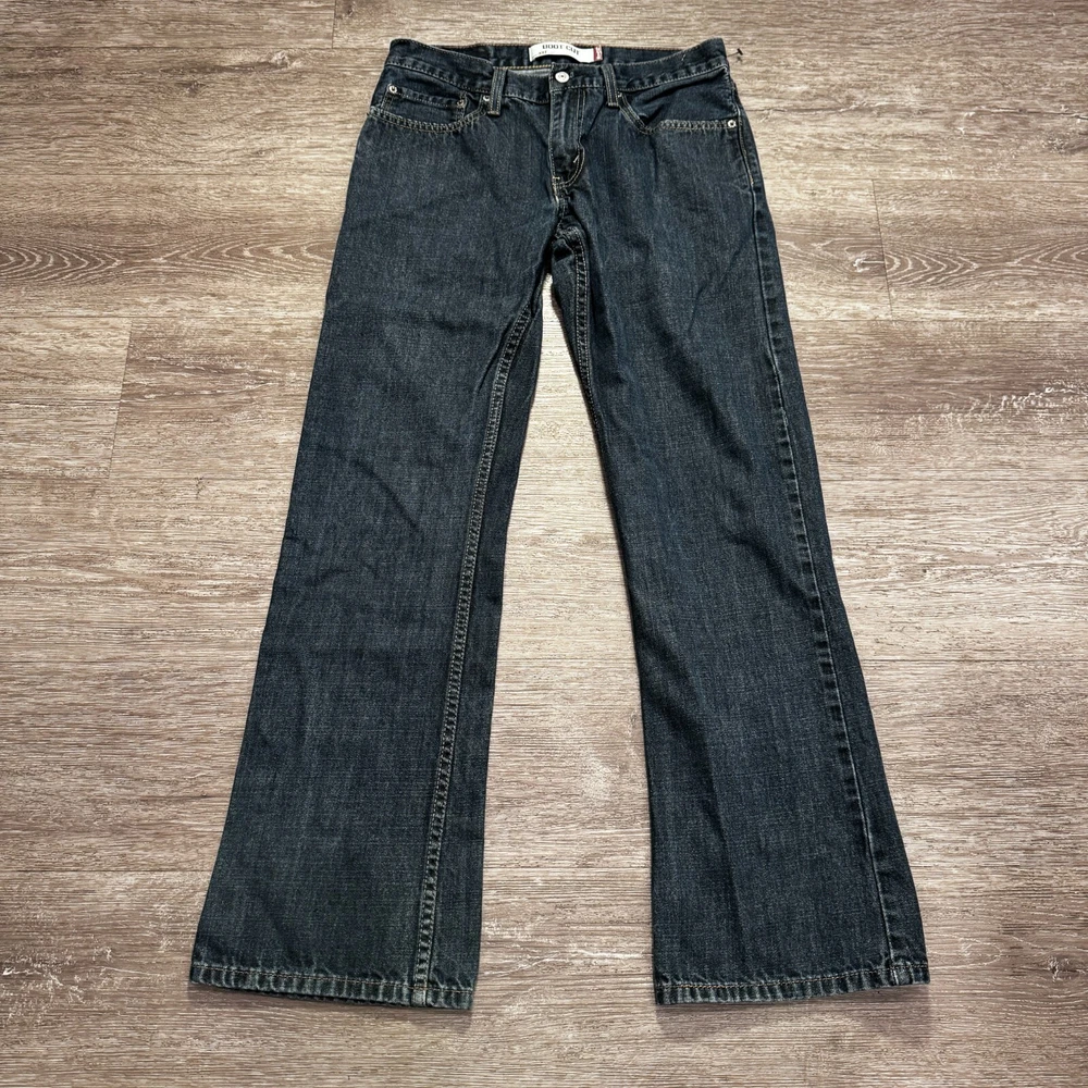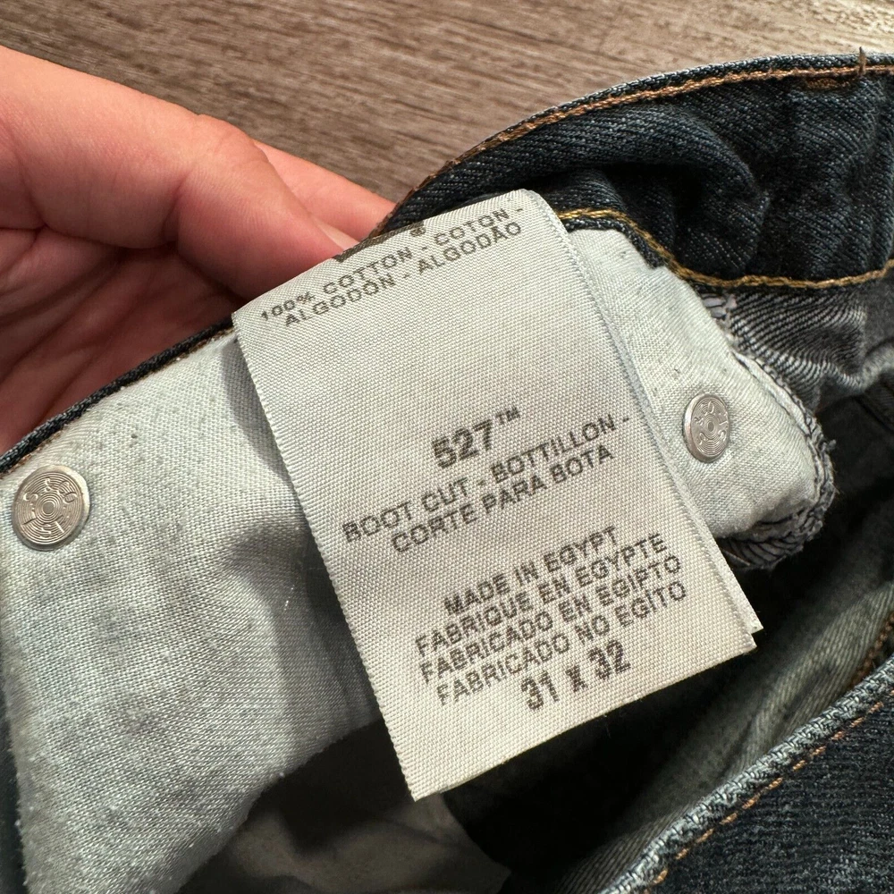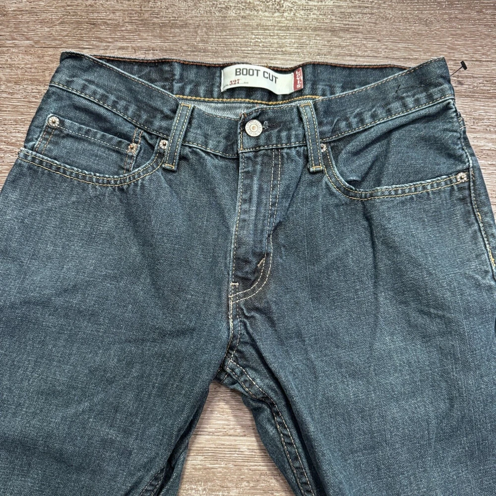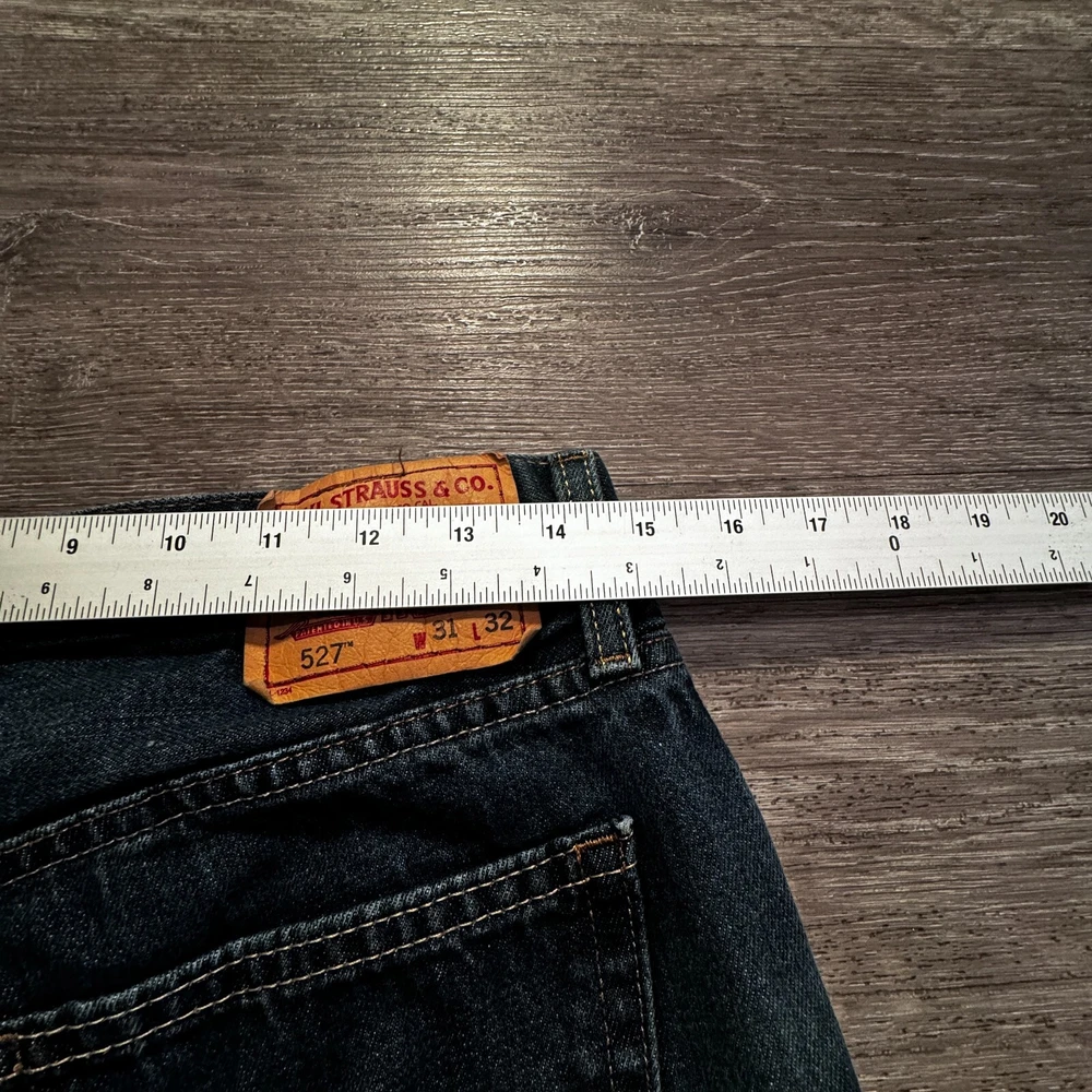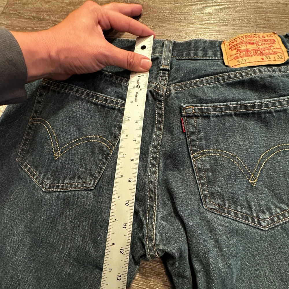 Waist Size: 31 in Closure: Button Brand: Levi's Fit: Classic Accents: Logo Department: Men Style: Bootcut Features: Slimming, Stretch Fabric Type: Denim Material: Cotton, Cotton Blend Size Type: Regular Color: Blue Model: Levi's 527 Type: Jeans Product Line: Levi's 527 Series Size: 31 Rise: Low (8-10 in) Inseam: 31 in Fabric Wash: Medium