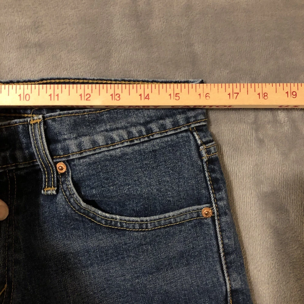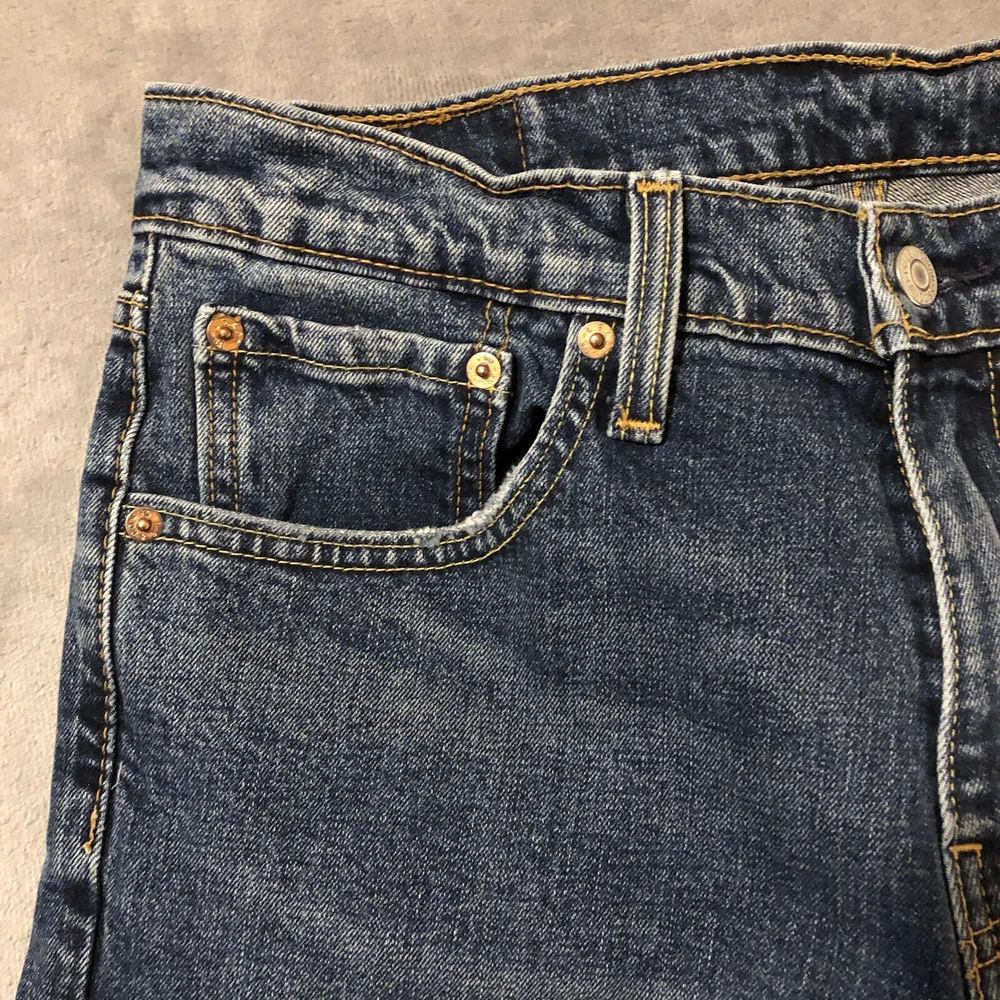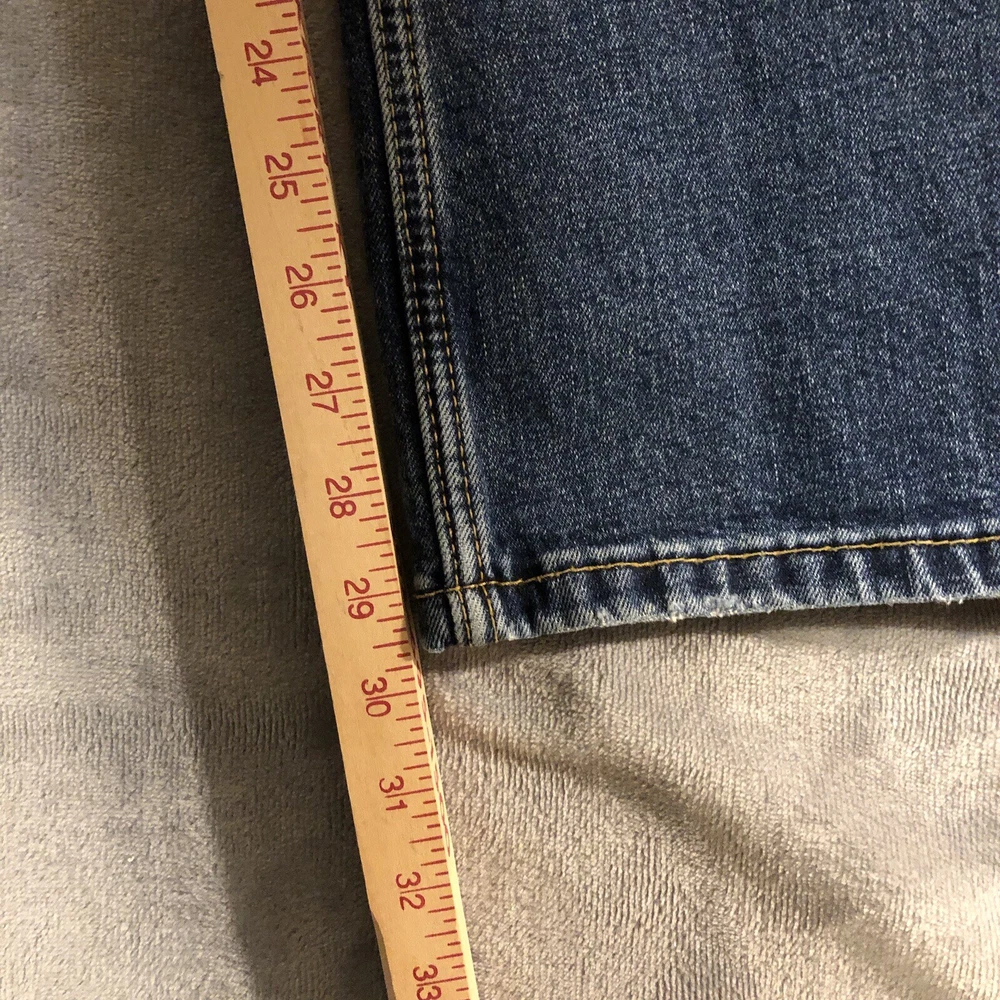 Levis 527 Jeans Mens 31x30 Slim Boot Cut Low Rise Blue Denim Measure 32x29.5 Jeans are in good pre-owned condition with mild wear to the front pocket edges and hems, see photos. Mild scent of fabric softener.