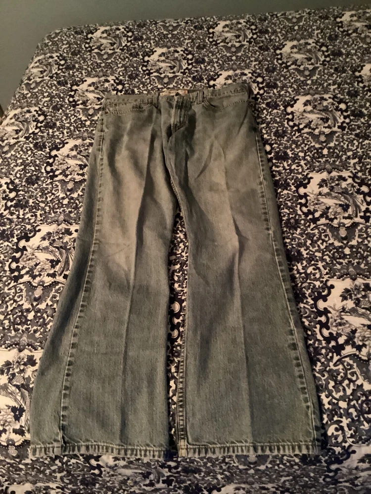 Crafted for comfort and durability, these Levi's 527 Low Boot Cut Jeans in a classic blue hue are a wardrobe staple for any fashion-savvy individual. The 33-inch waist and 30-inch inseam are tailored to fit with a regular rise, ensuring a flattering silhouette that complements your style without compromising on ease of movement. The jeans feature the iconic 5-pocket design, a sign of the brand's commitment to practicality without sacrificing aesthetics. The light fabric wash and subtle accents, including the recognizable Levi's logo, button, and zipper, enhance the overall look, making them a versatile choice for an array of occasions and seasons. Machine washable for easy care, these jeans are designed to maintain their shape and color through every wear. Excellent Used Condition!