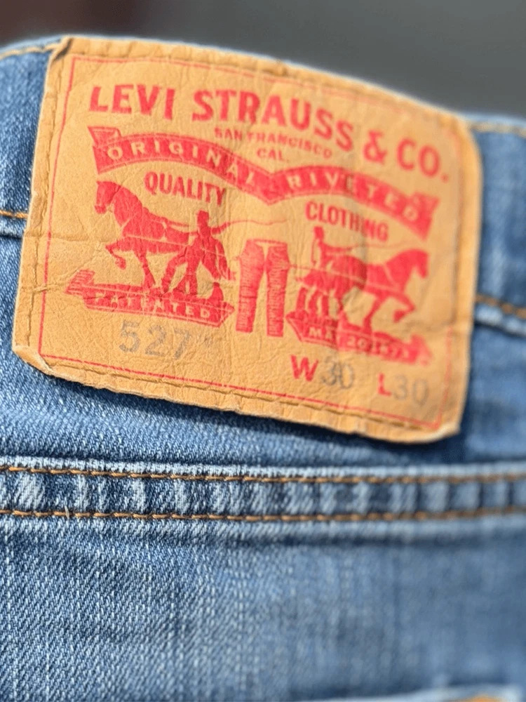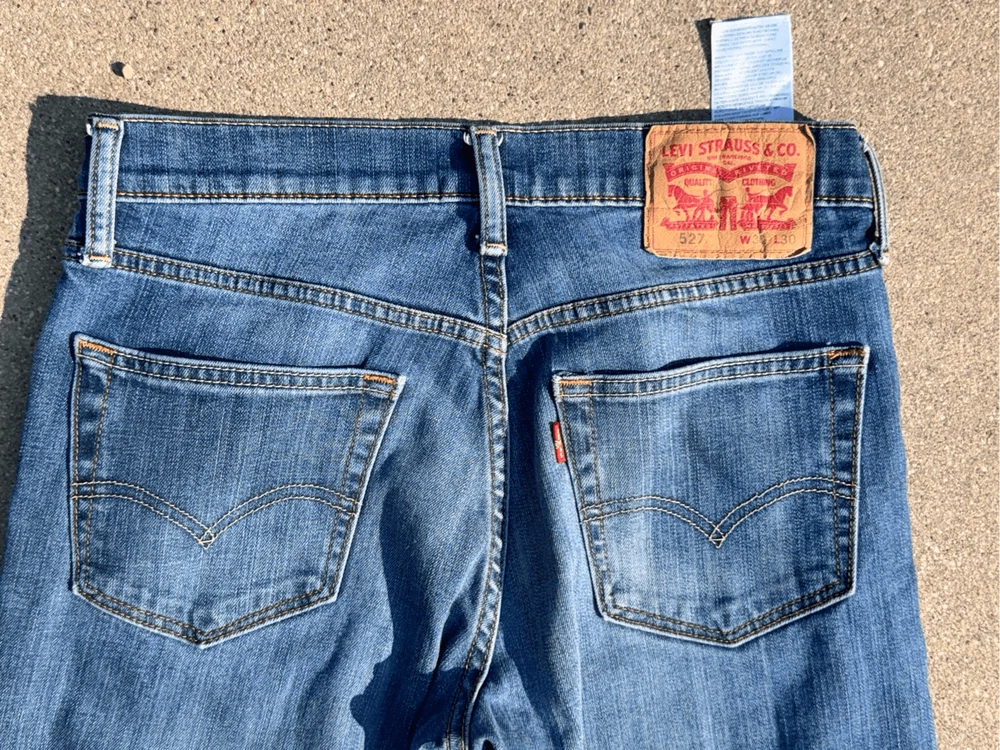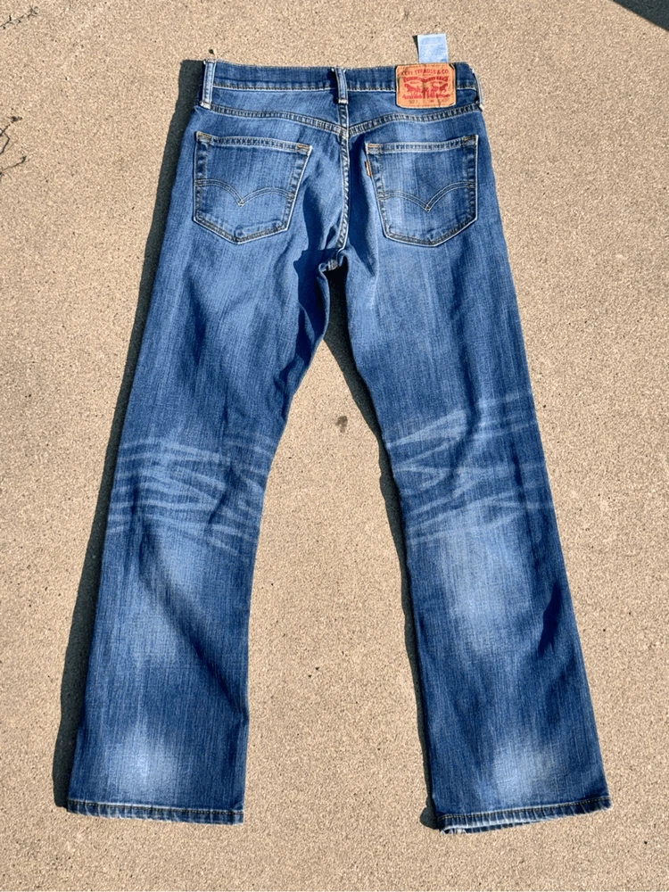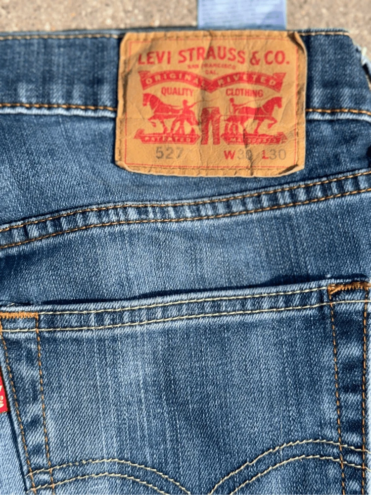 Levi's 527 jeans. Waist is 30 length is 30. Classic light blue wash. Five pocket. Printed pocket. Made in Pakistan. No rips, tears or stains. This is a great preowned already broken in classic pair of Levi's. Brown tab on the waistband.