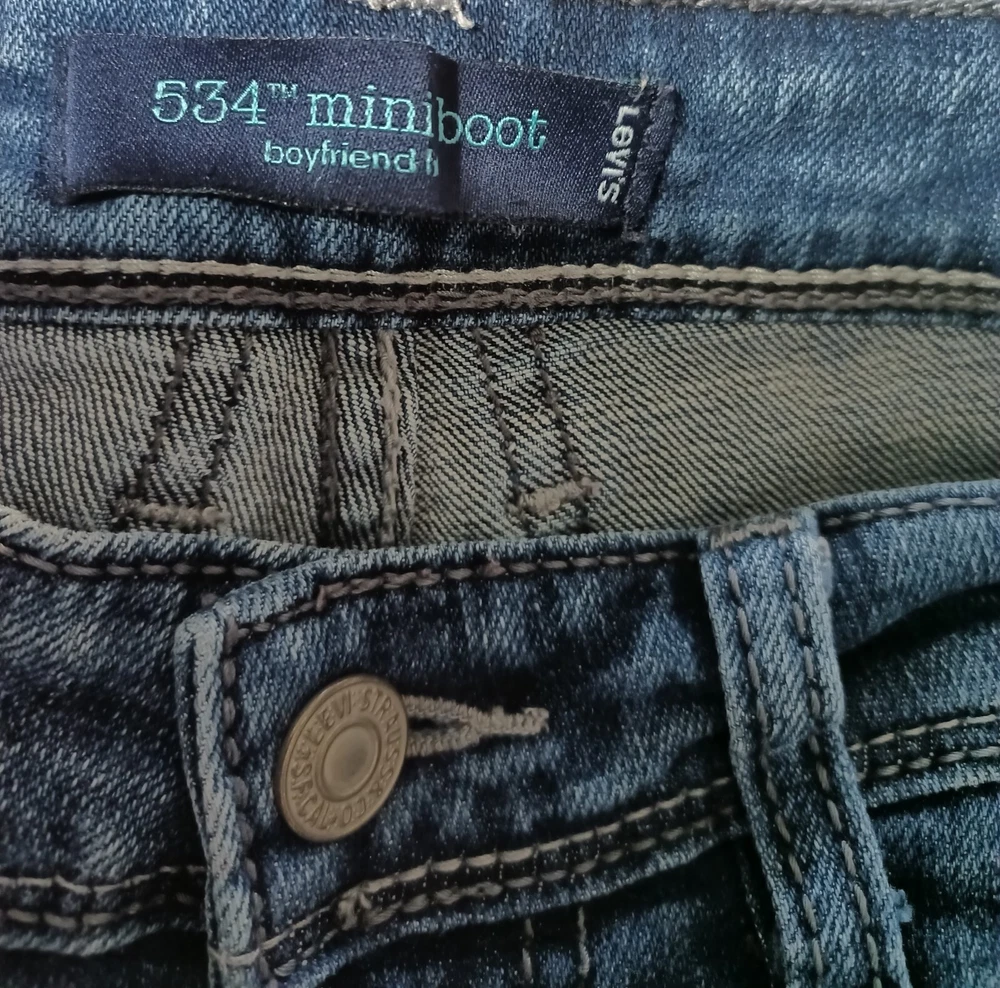 The product is a pair of Levi's 534 Women's Bootcut Jeans in a medium wash with a low rise. They are a size 5 with a waist size of 30 inches and inseam length of 30 inches. Made from a cotton blend denim fabric, these jeans feature a zip and button closure and have stretch for added comfort. The design includes Levi's logo accents and falls under the regular fit category. Perfect for a casual and stylish look, these jeans are a versatile addition to any wardrobe.