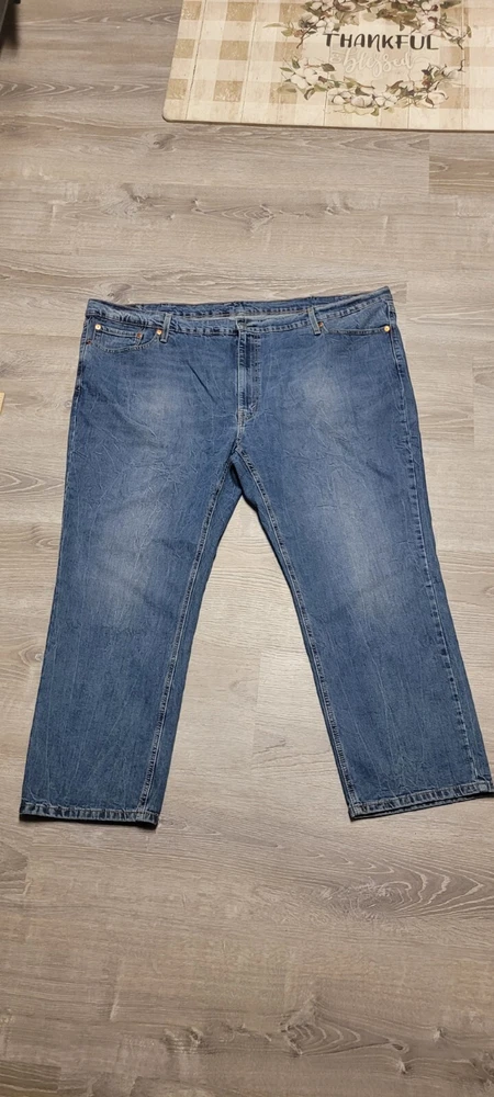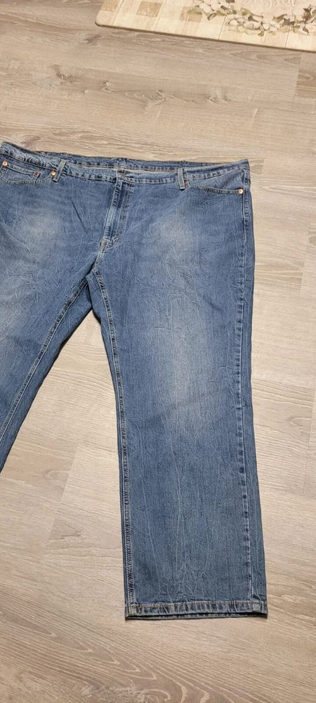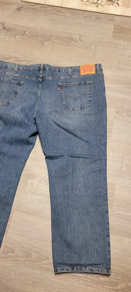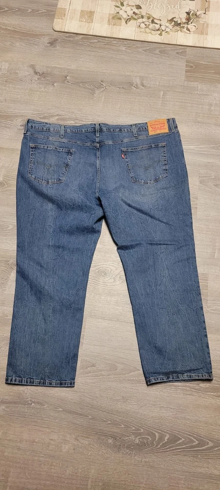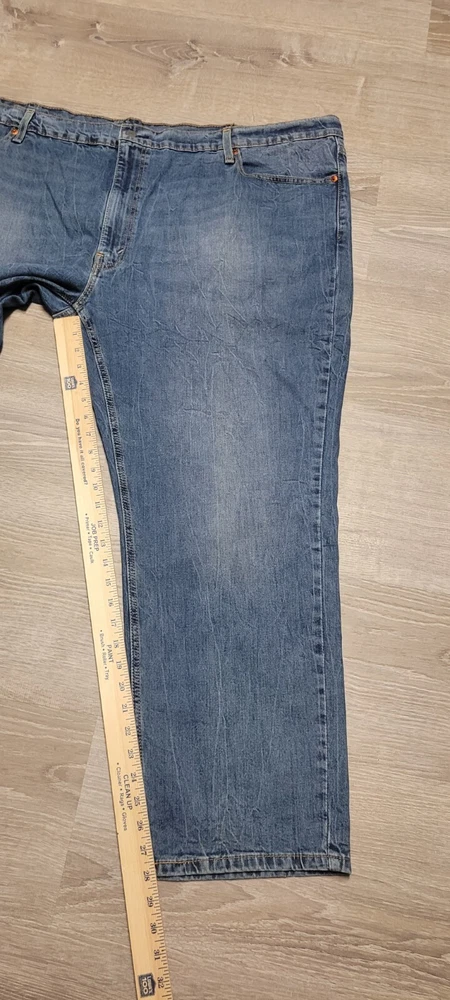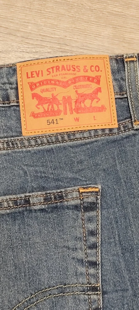 Upgrade your denim collection with these Levi's 541 straight leg jeans. The medium wash cotton and elastane blend fabric is perfect for everyday wear and is machine washable for easy care. The blue color and denim fabric type make these jeans a versatile addition to any wardrobe. These big and tall size W52 L30 jeans are designed to fit comfortably and feature a straight leg style. The inseam length can be seen in the photos provided. These Levi's 541 jeans are a high-quality option for any man looking to add a durable and stylish pair of jeans to their collection. B
