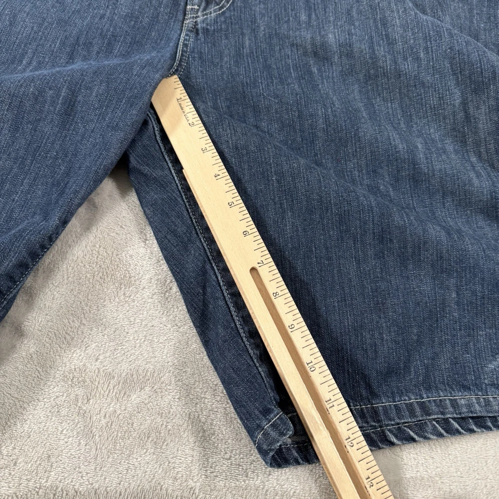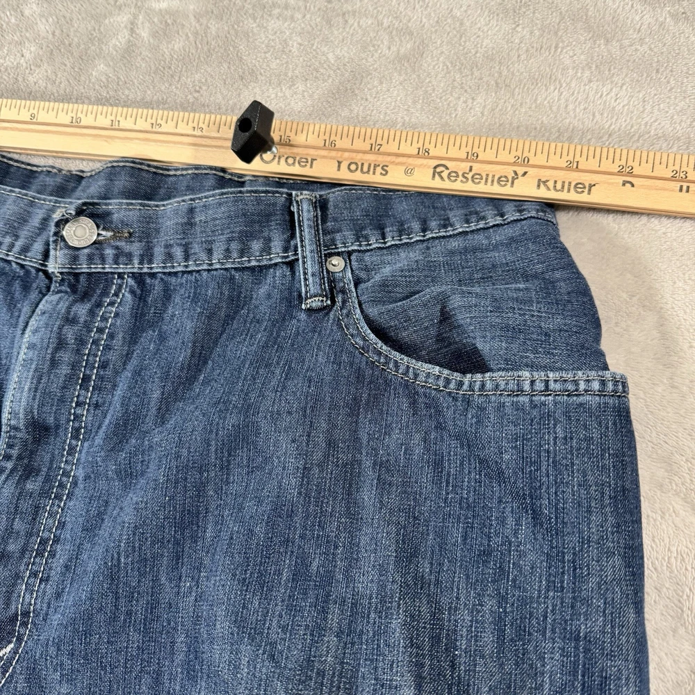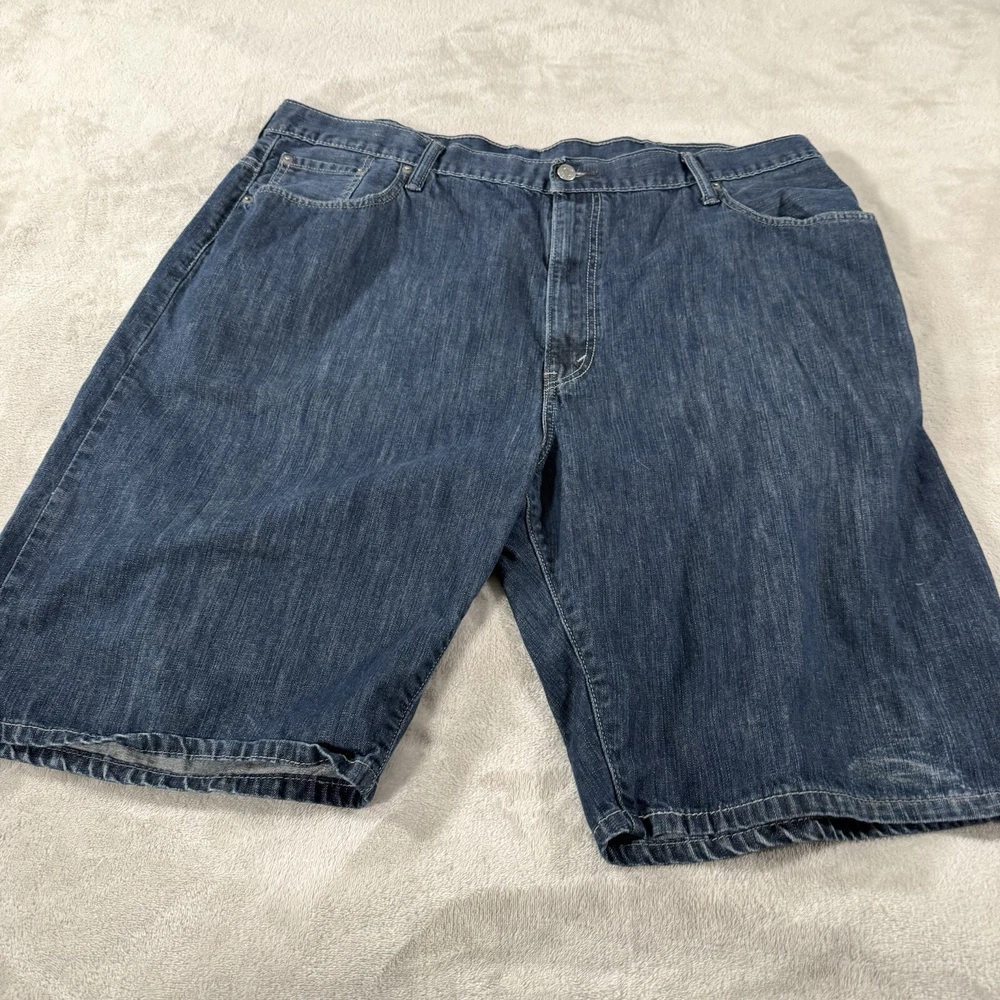 Crafted for comfort and style, these Levi's 569 denim Bermuda shorts are a versatile addition to any man's wardrobe. The relaxed fit ensures ease of movement, while the high-rise cut offers a classic look that's equally appropriate for a casual day out or for workwear purposes. In a rich dark wash, they're made from durable cotton and feature a practical 5-pocket design to keep essentials close at hand. Details like the signature Levi's logo, button accents, and a sturdy zipper closure add to the shorts' authentic appeal. With an inseam of 11 inches and a waist size of 44 inches, these shorts cater to a regular size type and are easily cared for with machine washing. Whether for travel, everyday wear, or outdoor activities, these shorts provide a blend of functionality and timeless fashion.