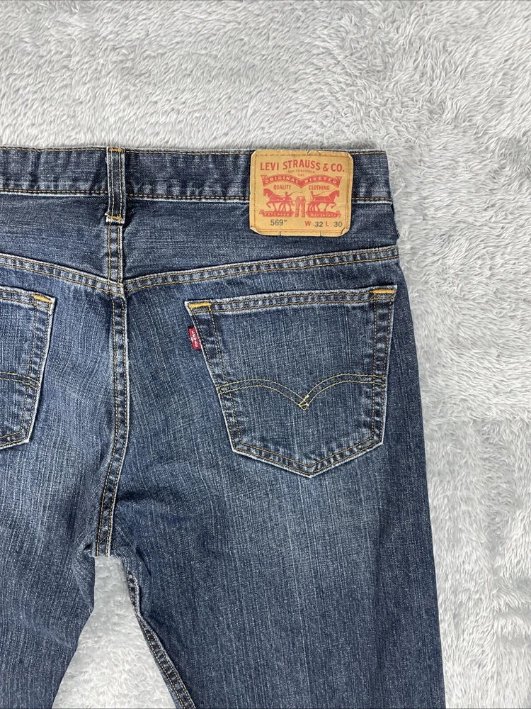 Levi's 569 Jeans Men's 34x29 (Actual) Blue Loose Straight Fit Cotton Denim Pants Tag size is: 32 x 30 Actual measures are: ~34 x 29 --waist measures slightly over 34" See photos for measurements. Condition is used. Good used condition with typical wear. No losses to note. See photos for condition and detail. Please look carefully at all photos. The photos are an important part of the description. If you have questions, please ask. Returns are accepted within 30 days of purchase. The item must be returned in exactly the same condition as received. Items will be inspected, serial numbers checked, etc. Shipping fees are not refundable.