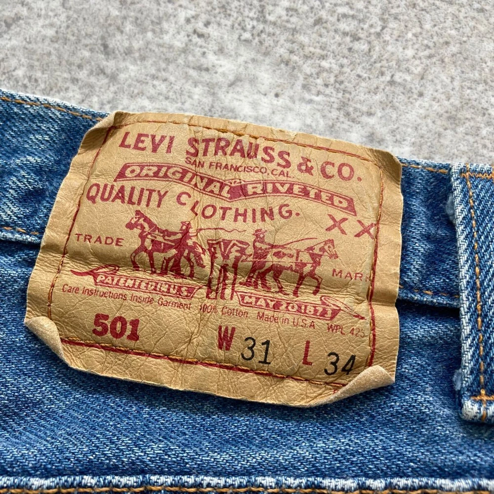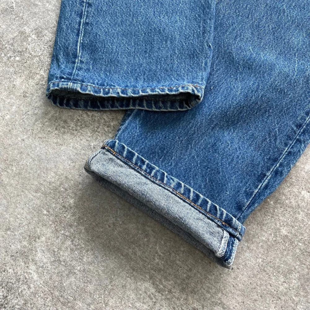 Levi's 90s 501 Vintage USA Made Denim Jeans with Red Letter Paper Patch and 90 Tab
