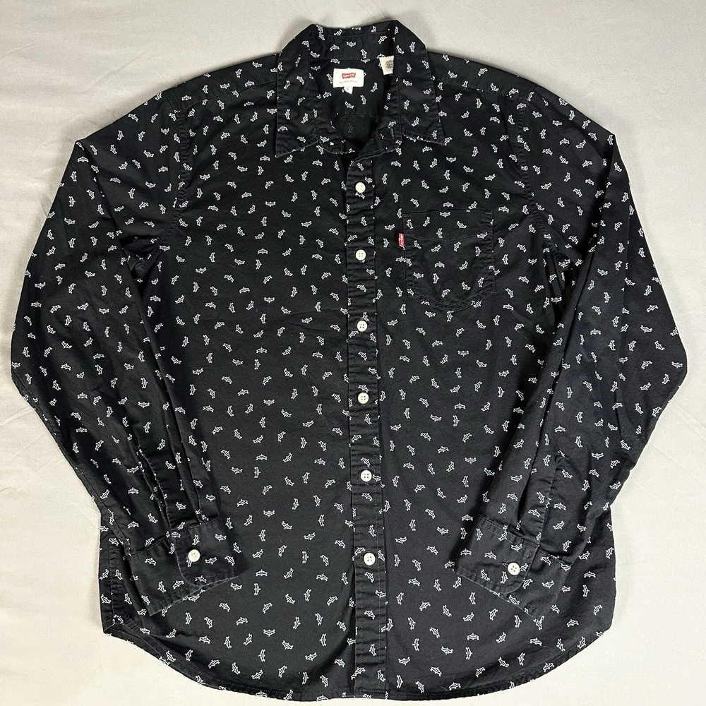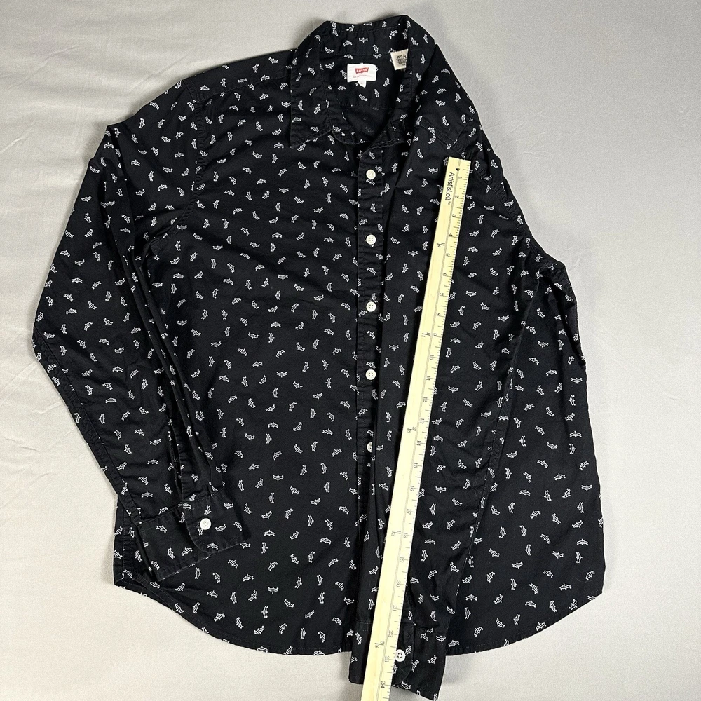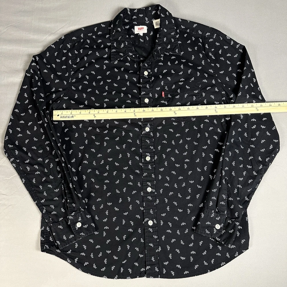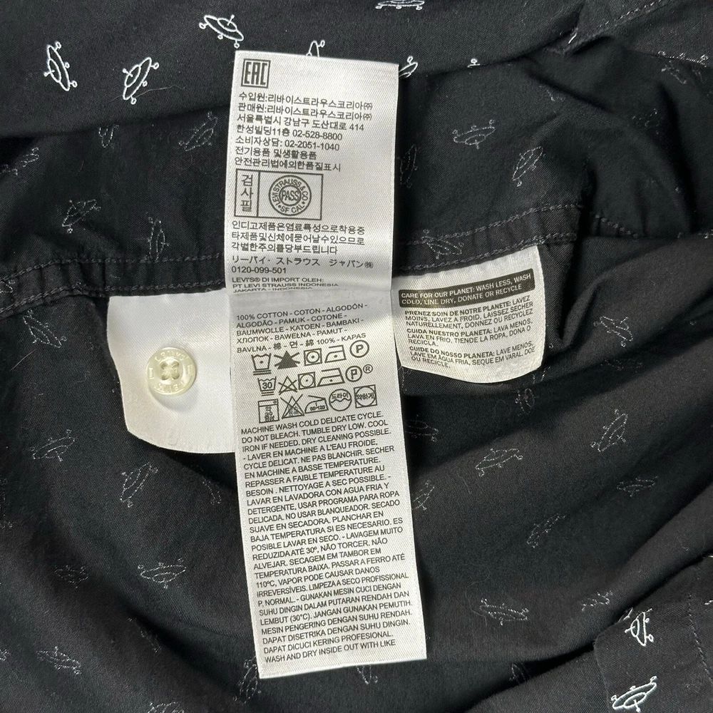 Featuring a graphic print of white flying saucers, this black button-up shirt is perfect for any casual occasion. Made of lightweight cotton fabric, it is machine washable and suitable for all seasons. Lay-Flat Measurements Length: 28” Chest: 20” Sleeve: 24” Shipping: All items are packed with care. I do use recycled packing and shipping materials whenever possible. If you have any issues with your purchase, please reach out as soon as possible. Clothing and accessories have a 30-day return window, returned in the same condition sent, with original tags and labels as applicable. Return shipping paid by buyer. Thank you for your business and let me know if you have any questions!