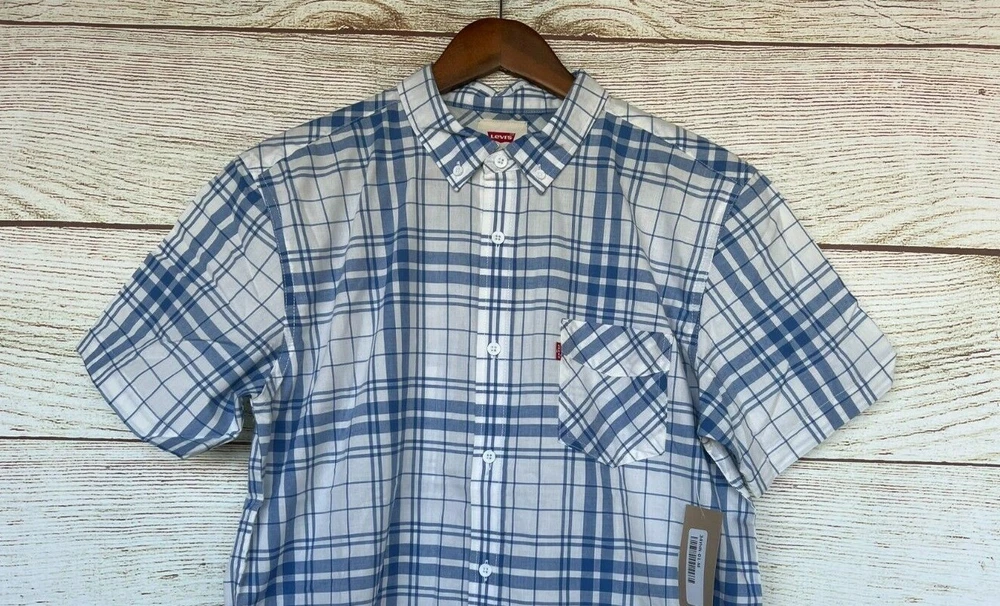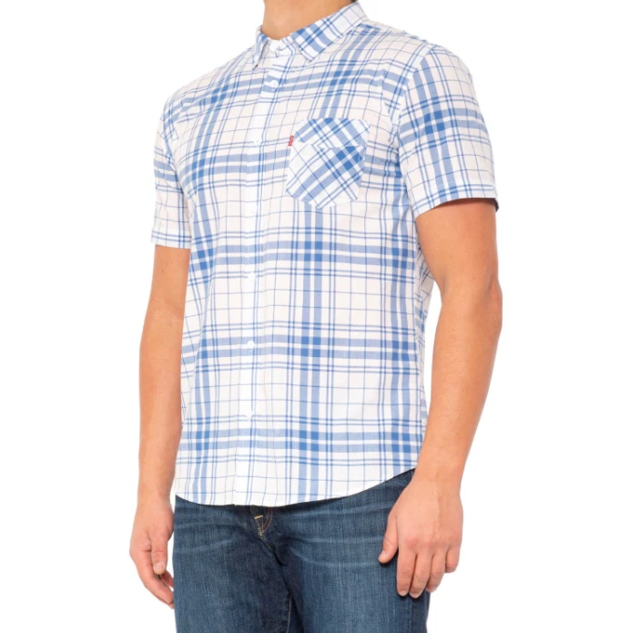 Actual Measurements Underarm to underarm: 20" Top of shoulder to bottom: 29" Retails for $40 About Levi's Payor Shirt - Short Sleeve (For Men) Upgrade your warm-weather wardrobe with this Levi's Payor shirt, crafted from a lightweight, breathable soft-woven cotton blend. Lightweight woven cotton-poly fabric Button-down collar Chest pocket Button front Shirttail hem Made in Viet Nam Specs Specs about Levi's Payor Shirt - Short Sleeve (For Men) Collar: Button down Short sleeves Closure: 7 Buttons Fabric: 60% cotton, 40% polyester Care: Machine wash, tumble dry low heat
