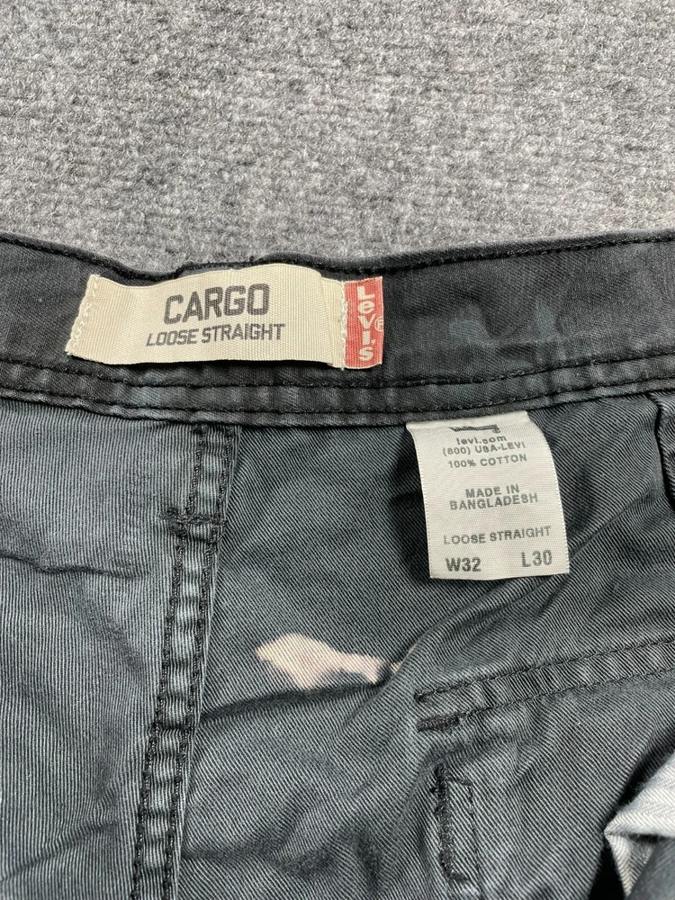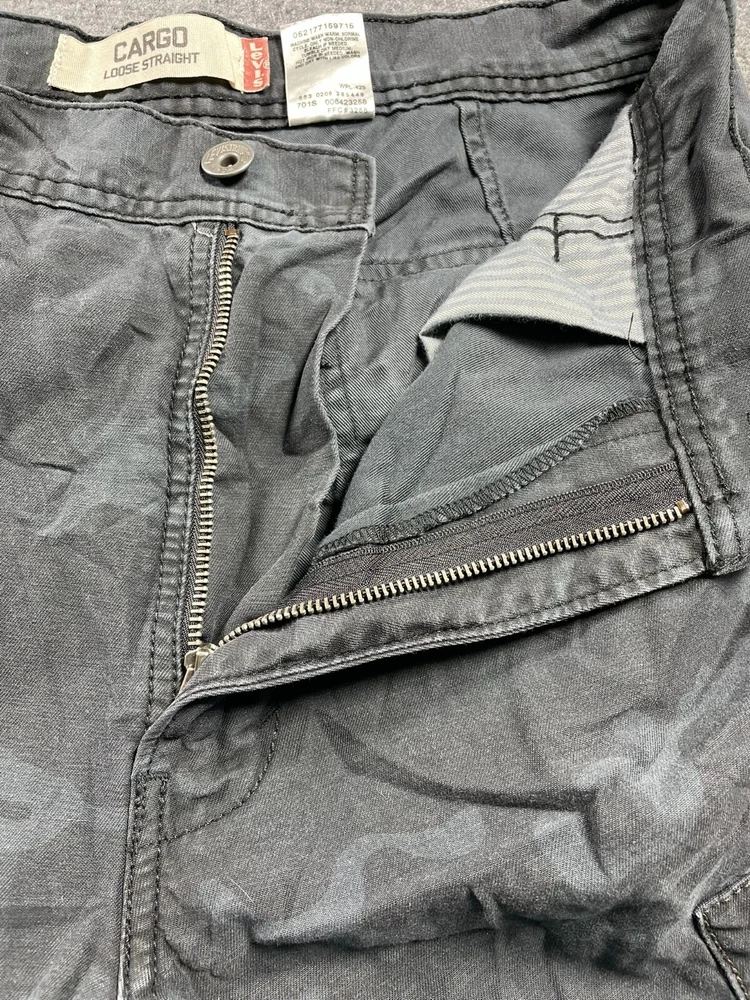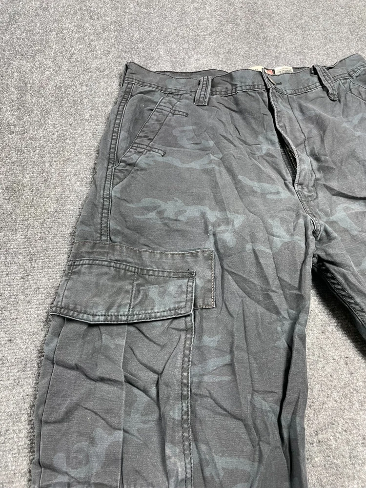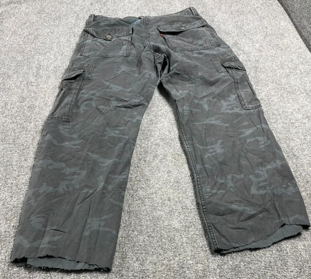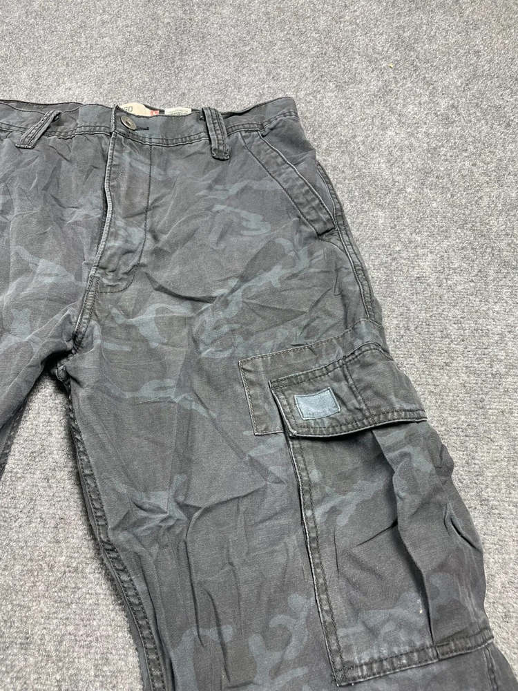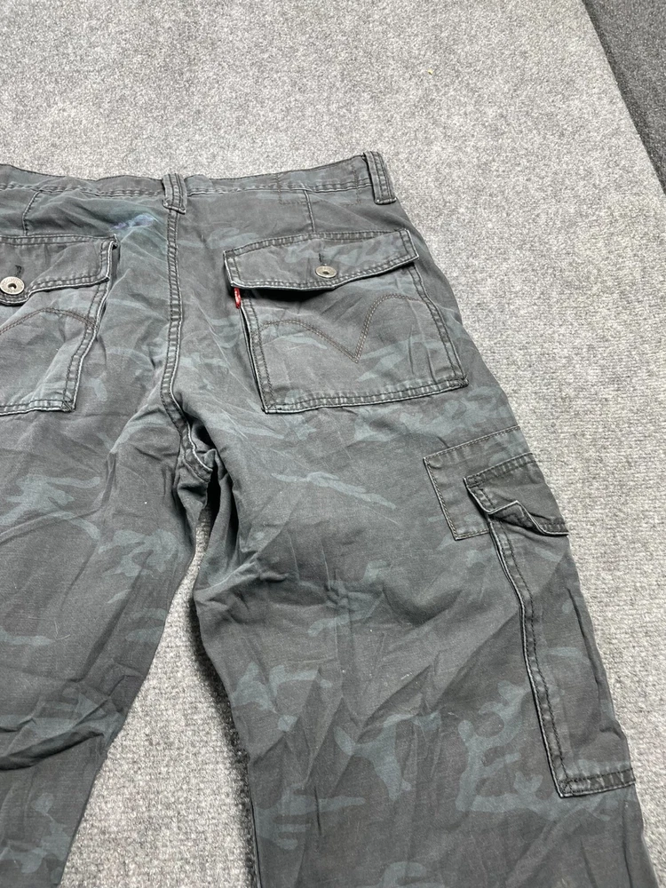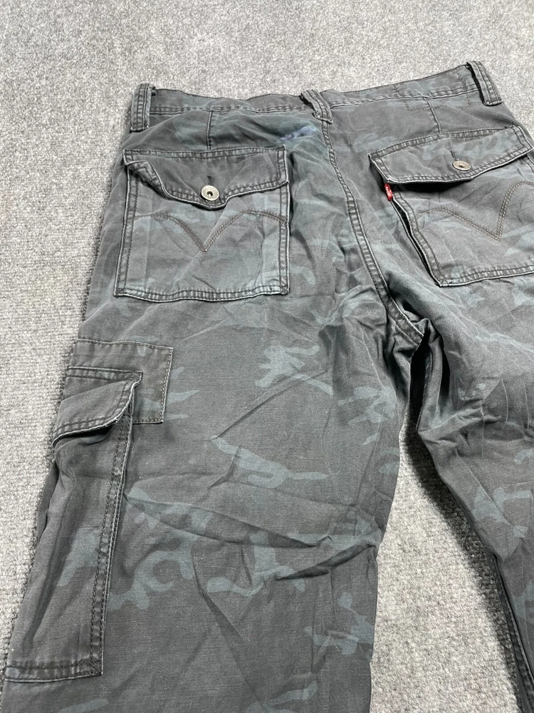Elevate your wardrobe with these stylish Levi's Cargo Loose Straight Men's Pants in Black Camouflage. The pants feature a flat front and a straight leg style that provides a comfortable fit for any occasion. They come with a zip and button closure and cargo pockets that are perfect for travel, workwear, or casual use. Made of durable cotton canvas material, these pants are easy to care for and machine washable. They are ideal for outdoor hiking or adventures, with a relaxed fit that allows for maximum movement. The pants also feature accents such as a button, zipper, and logo that add a touch of style to your outfit. Get ready to explore the great outdoors with these versatile and fashionable Levi's Cargo Pants.