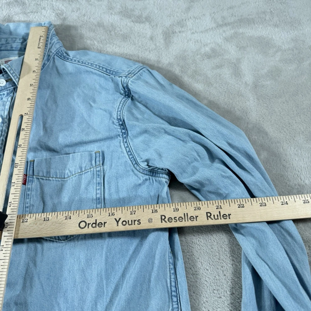 This Levi's Chambray shirt is a versatile piece perfect for any occasion. With a collared neckline and button-down closure, it features a regular fit and long sleeves. The shirt is made of chambray fabric, which is machine washable and perfect for all seasons. It comes in a beautiful blue color with a solid pattern and button accents. The shirt has a standard cut and features pockets for convenience. It is suitable for travel, casual outings, and workwear. The Levi's brand is known for its quality and durability, making this shirt a great addition to any wardrobe. Get this Levi's Chambray shirt today and experience its timeless style and comfort.