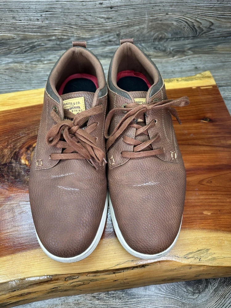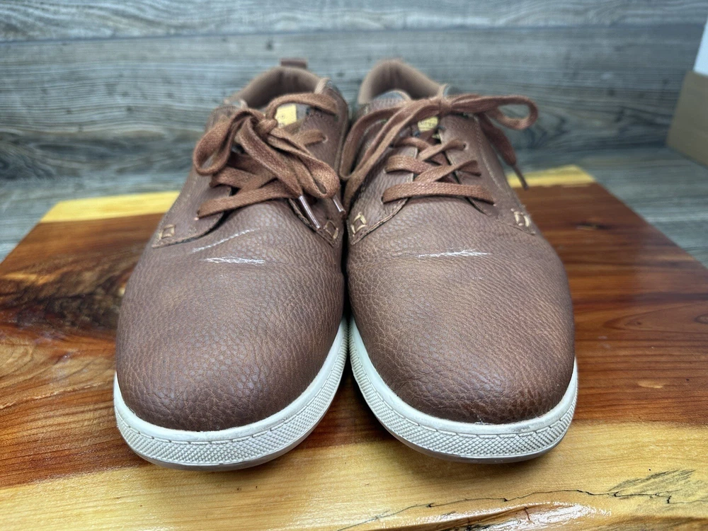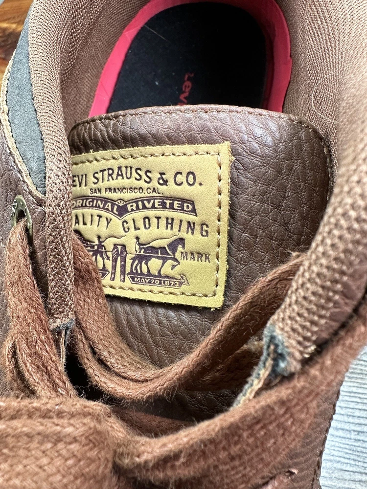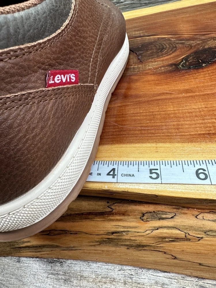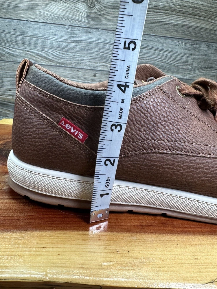 Elevate your shoe game with these stylish Levis Comfort Shoes. With a brown leather upper and lace-up closure, these sneakers are perfect for any casual occasion. The synthetic lining and insole provide ultimate comfort, while the rubber outsole ensures durability. These shoes are a size US 12 or UK 11 with a standard shoe width. The model is Levi's Comfort and the product line is Ethans. Add these Levis Comfort Shoes to your collection today!