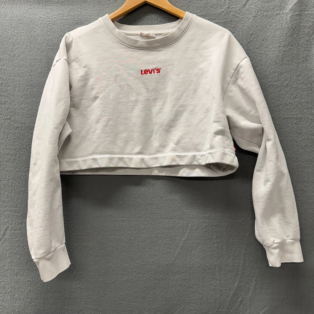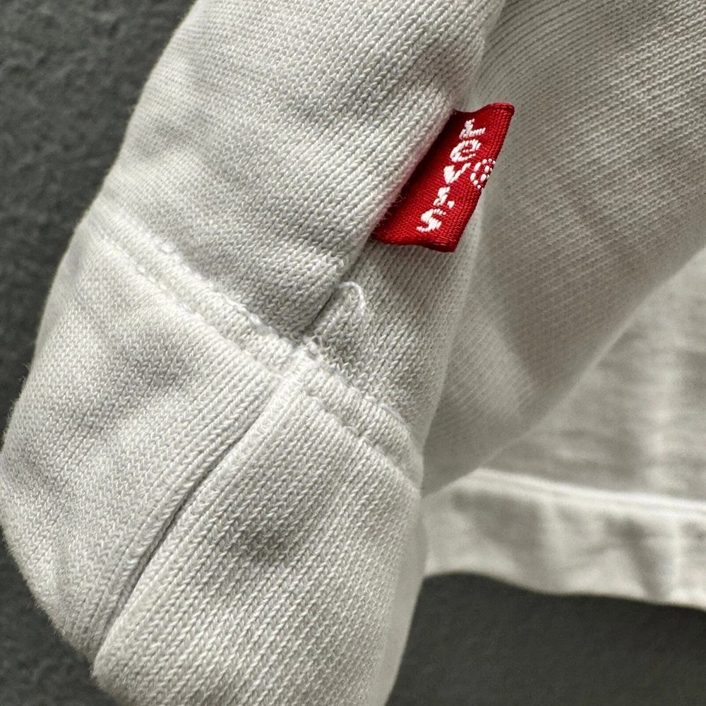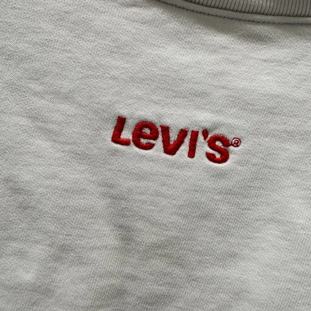 Levi's Cropped Sweatshirt Womens Small Off White Red Center Hit Pullover Very good condition, see all pictures for views. •Pit to pit: 21" •Shoulder to hem: 15" Ships out same day or next open postal day. Thank you for your purchase, we appreciate you!