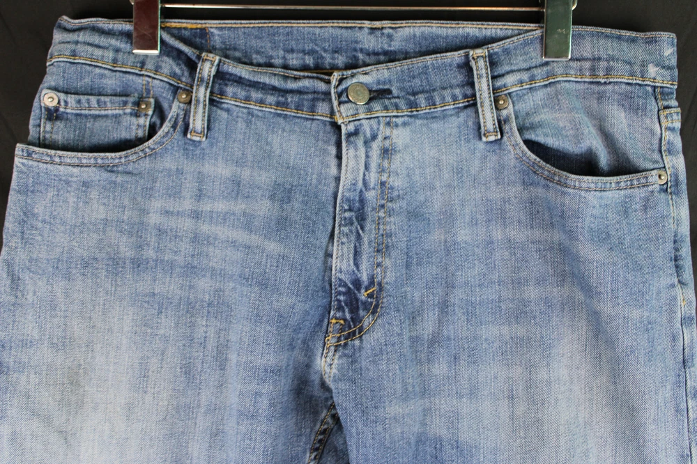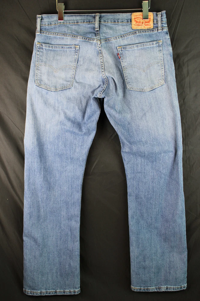 Country/Region of Manufacture: Mexico Fabric Type: Denim Inseam: 32 in Pocket Type: 5-Pocket Design Fabric Wash: Medium Closure: Button, Zip Brand: Levi's Material: Cotton Blend Rise: Mid (10-12 in) Pattern: Solid Model: Levi's 914 Seller Notes: “Great Vintage Shape - Nice Fade And Hige - Stain Spot On Front Shown In Photos” Season: Fall, Spring, Summer, Winter Waist Size: 33 in Garment Care: Machine Washable Fit: Regular Size Type: Regular Size: 33 Color: Blue Style: Straight Type: Jeans Department: Men