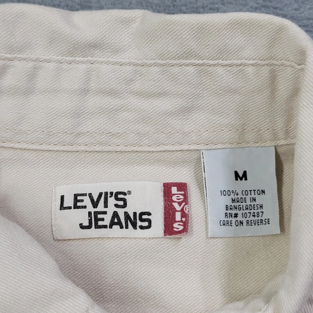 This Levi's denim shirt for men in size medium features a solid pattern with long sleeves and a collared neckline. The button-up closure and red color add a touch of style, while the cotton material and denim fabric type ensure comfort and durability. The shirt also includes chest pockets and a point collar style, making it a versatile addition to any wardrobe. Perfect for casual occasions, this shirt is a must-have for any fashion-conscious man.