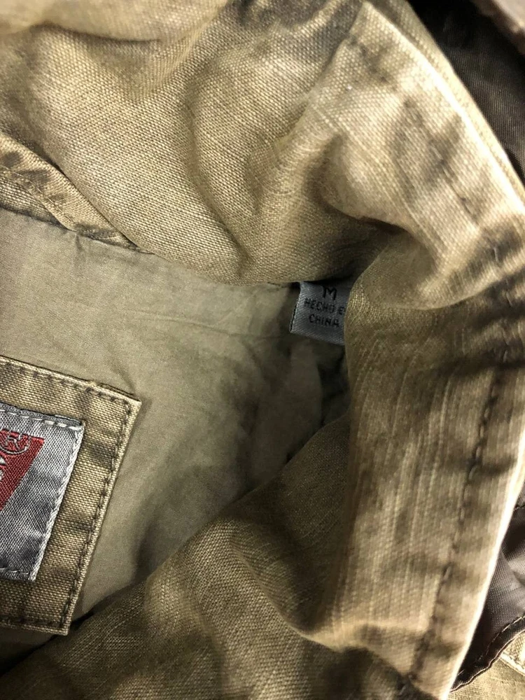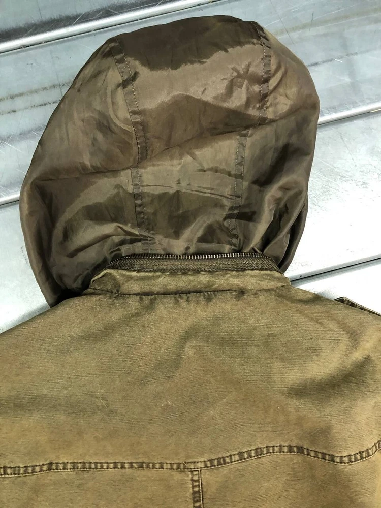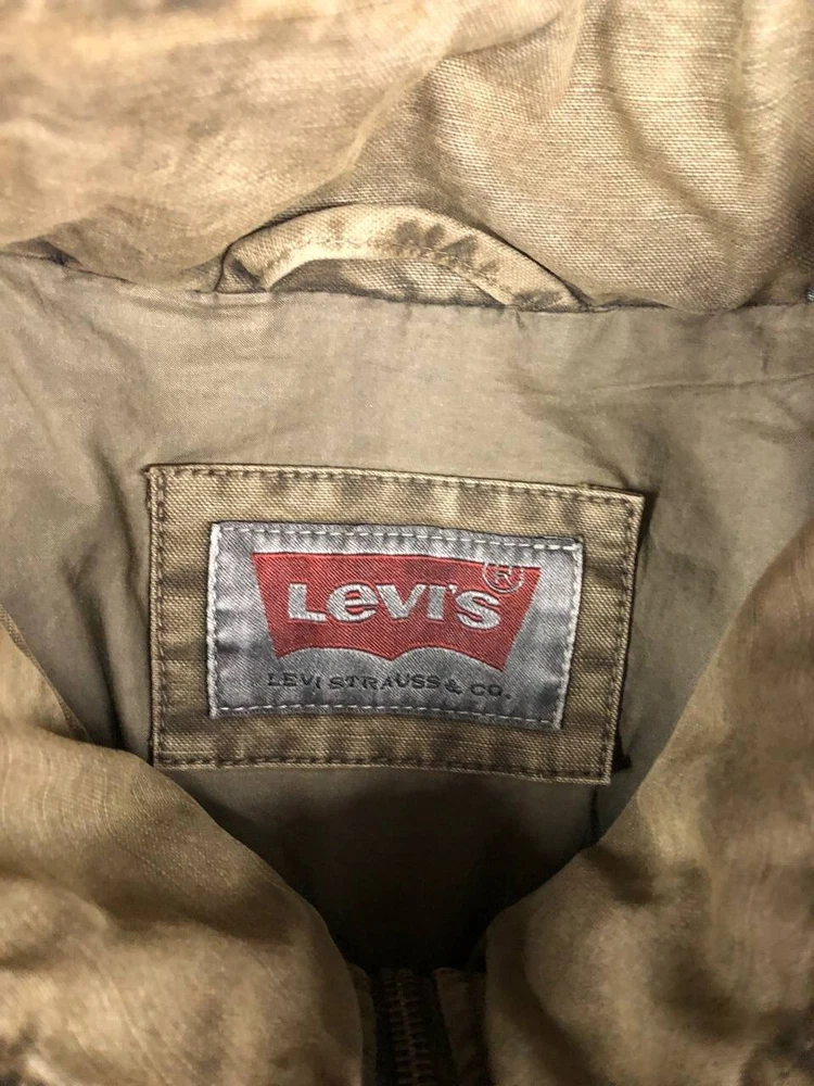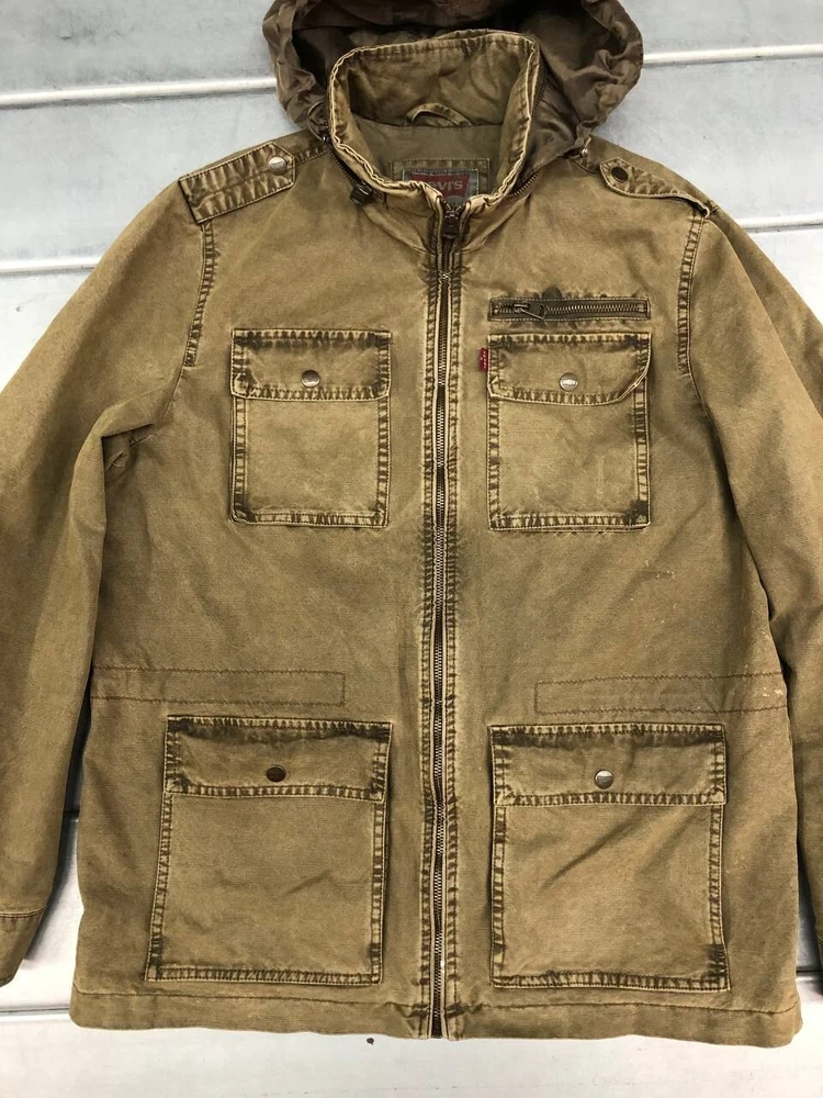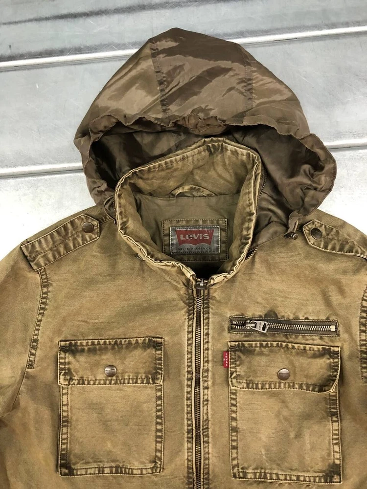 Levis Denim Utility Jacket Mens Medium Green Hooded Full Zip Very good condition, some marks one the jacket show in photo, please see pic for details and measurements T3