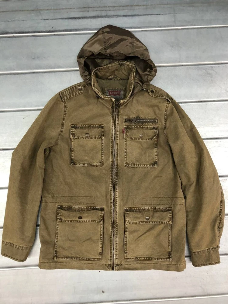 Features: Hooded Color: Green Department: Men Brand: Levi's Size Type: Regular Fabric Type: Denim Style: Utility Jacket Size: M Type: Jacket Outer Shell Material: Cotton