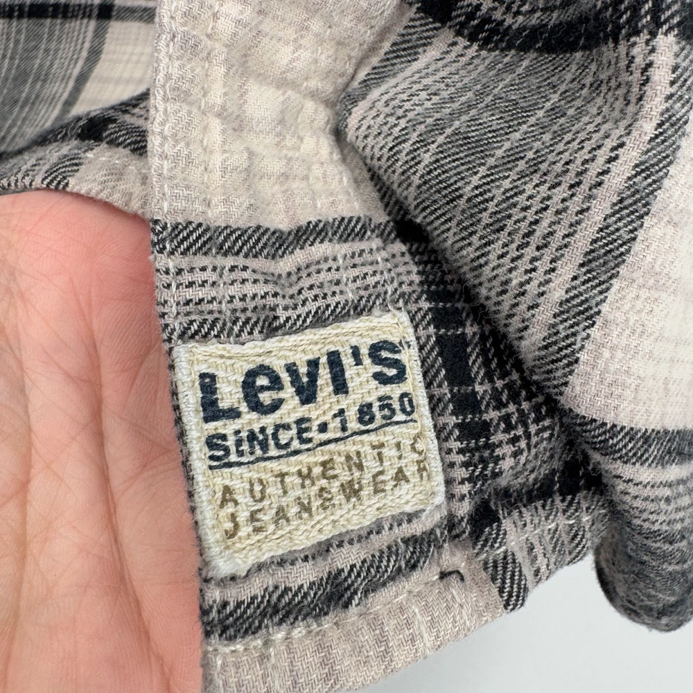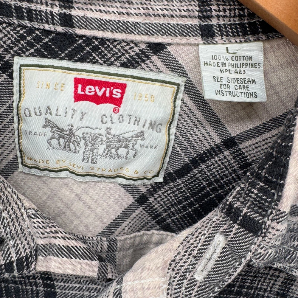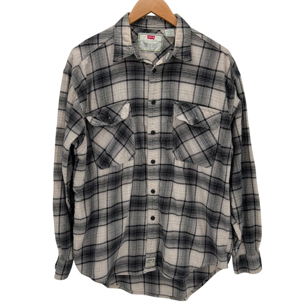 Levi's Flannel Shirt Mens Large Tan Black Plaid Button Up White Tab Vintage Very good condition, see all pictures for views. •Pit to pit: 23" •Shoulder to hem: 29" Front 31" Back Ships out same day or next open postal day. Thank you for your purchase, we appreciate you!