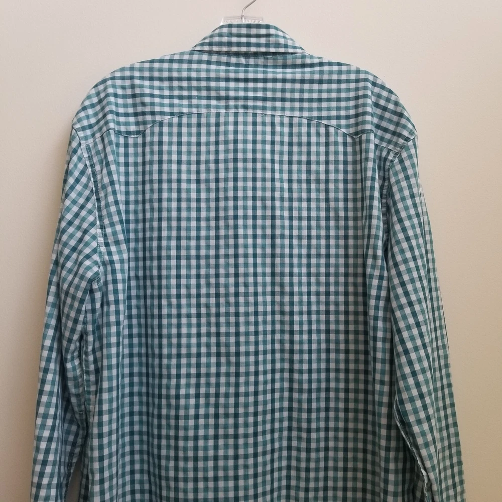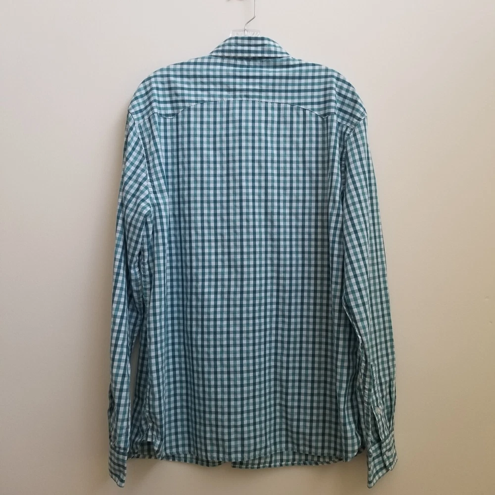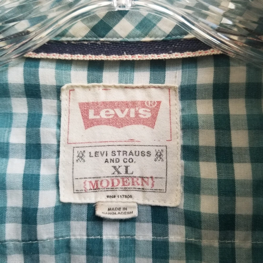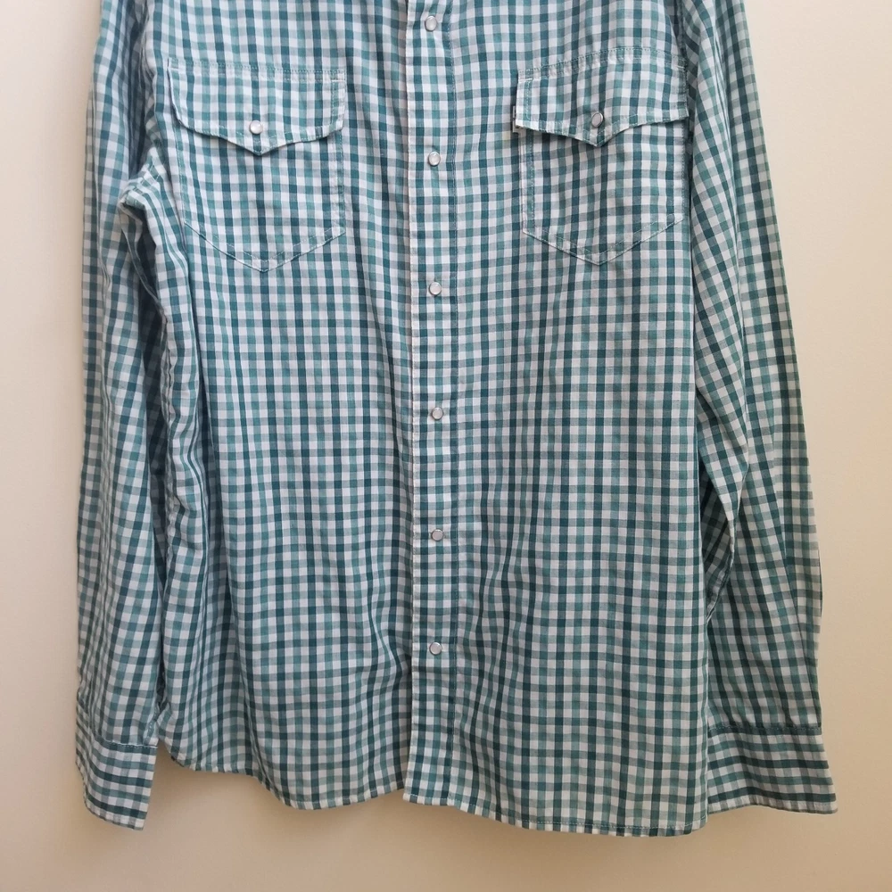 Levi's Green Stripe Western Men's Long Sleeve Snap Button Shirt Top Sz XL Pockets - Pre-Owned in very good condition - Measurements Approximately Shoulder to Shoulder - 19 in Chest Armpit to Armpit - 23 1/4 in Arm Length - 26 3/4 in Length - 31 3/4 in - Spring, Summer, Fall, Winter, Work, Office, College, School, Everyday, Day Out, Casual, Festive and Simple - Returns acceptable within 30 days of purchase unworn, in original condition - Check out my E-bay Store. Lots of Choices Available. Reduced shipping for 2 or more items. Let me know before you pay so I can send you an invoice to discount the shipping