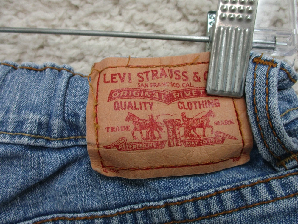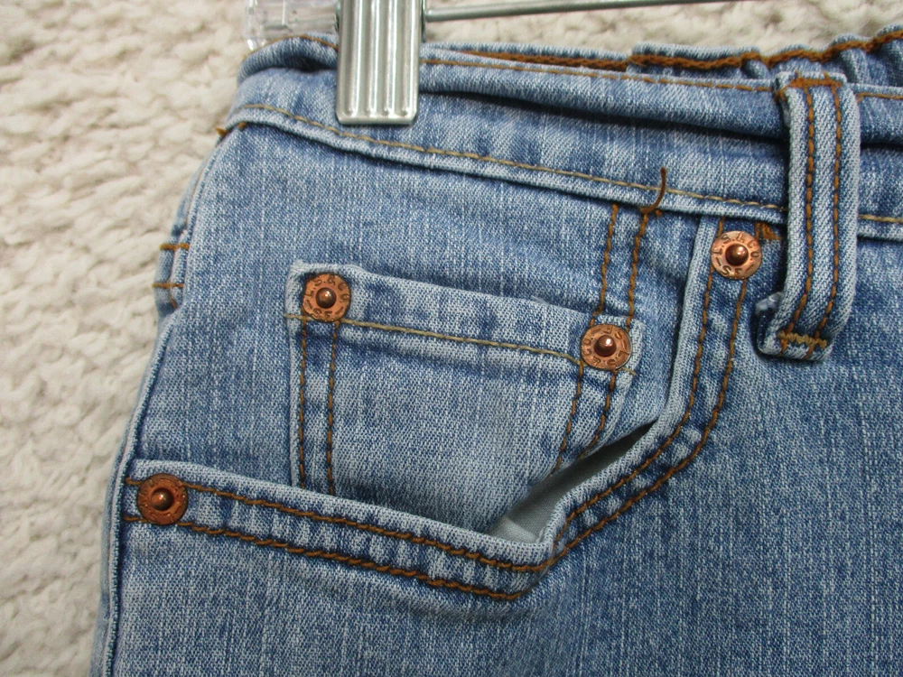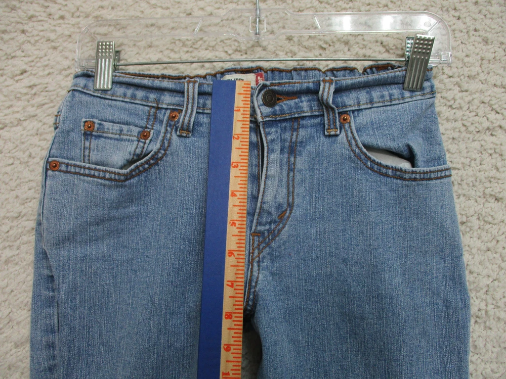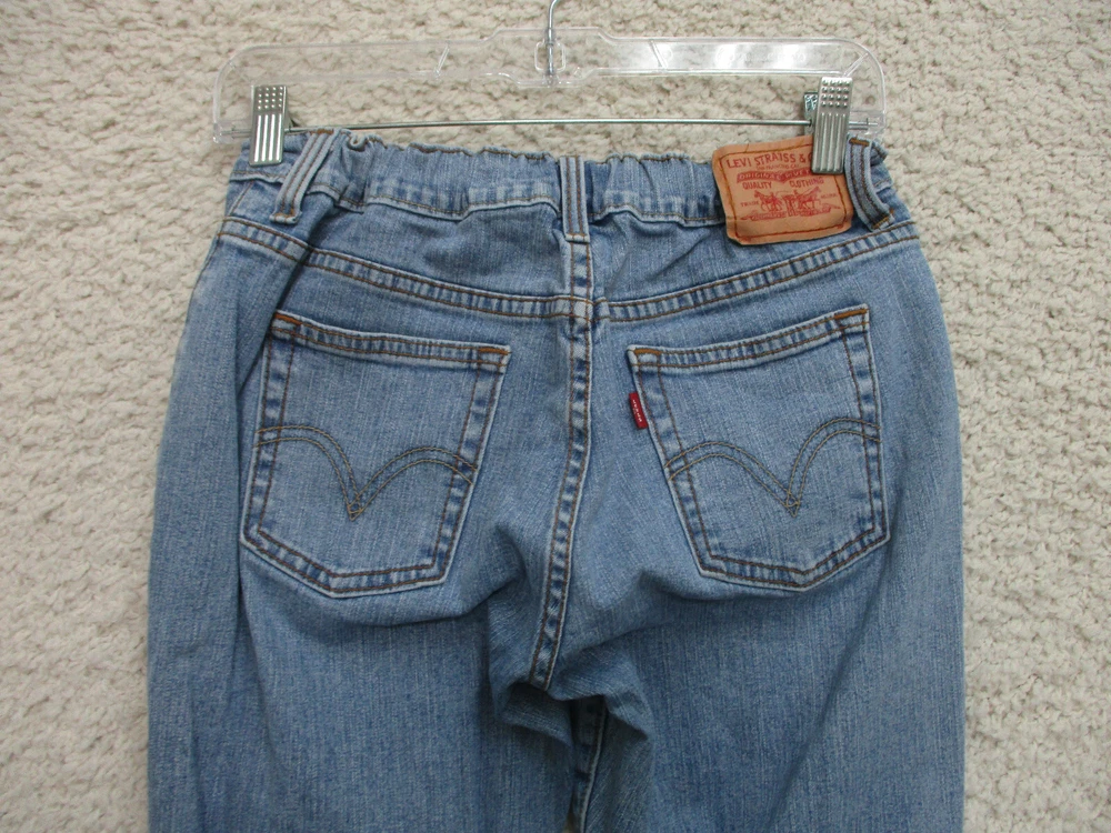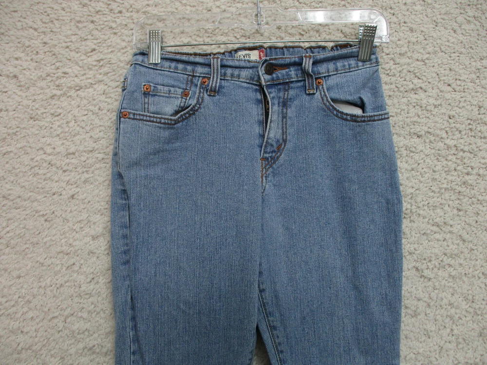 Levis Jeans 4 Womens Regular Size Blue Denim Boot Cut Elastic Waist Stretch Logo