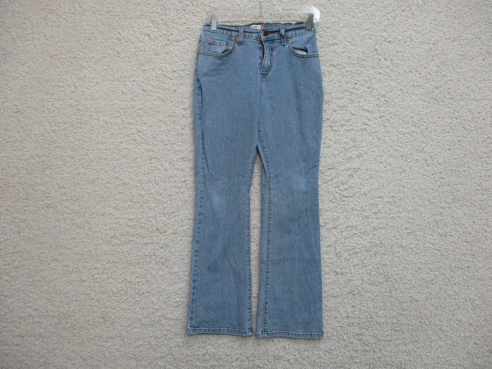 Pocket Type: 5-Pocket Design Accents: Button, Logo UPC: Does Not Apply gtin13: Does Not Apply Fabric Type: Denim Type: Jeans Closure: Zip Pattern: Solid Color: Blue Fabric Wash: Light Fit: Regular Inseam: 29 in Rise: Mid (8.5-10.5 in) Suspender Buttons/Belt Loops: Belt Loops Season: Fall, Spring, Summer, Winter Theme: American, Logo, Modern Brand: Levi's Department: Women Waist Size: 26 in Size Type: Regular Style: Bootcut Size: 4 Features: Comfort, Easy Care, Pockets, Stretch Garment Care: Machine Washable Country/Region of Manufacture: China Material: Cotton, Cotton Blend