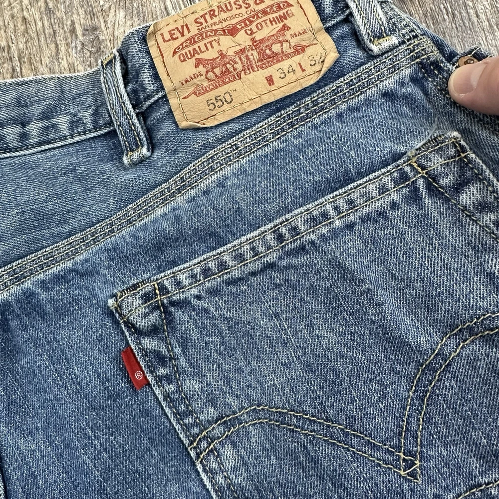 Vintage Levis 550 Relaxed Fit Utility Carpenter Blue Jeans - Medium Denim Wash 100% Cotton Men's Size - Tagged 34x32 - See Pictures After Wash/Dry Measurements Single cut on hem both left and right pant leg NOTE: Please see all photos for condition as all flaws will be shown throughout the photos! * COLORS MAY BE DARKER OR LIGHTER OR SLIGHTLY DIFFERENT DUE TO MONITOR/PHONE/TABLET SETTINGS. Please refer to the "condition description" for inspection notes. Actual measurements may differ from the tag due to potential shrinkage, stretching, hemming, or manufacturer error. It is common for pre-owned jeans to shrink or stretch based on how they were washed/dried/worn from previous owners. If measurement differs more than 1.5" either way from what the tag says, I will list the items as actual measurements to ensure proper fit. I recommend measuring yourself before ordering online to help find the perfect fit for you. My shipping discount: $3 shipping on each additional item you add to your order!