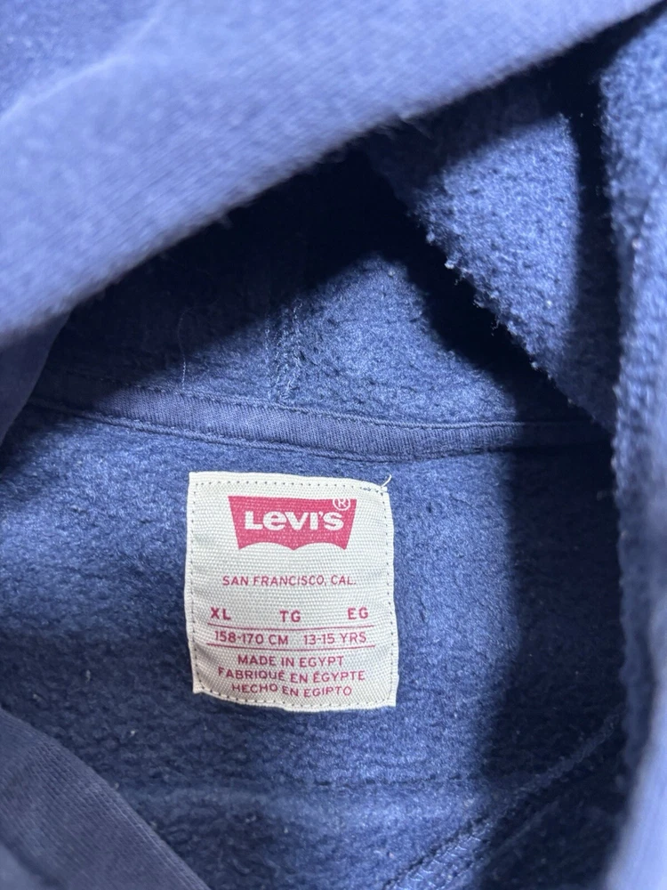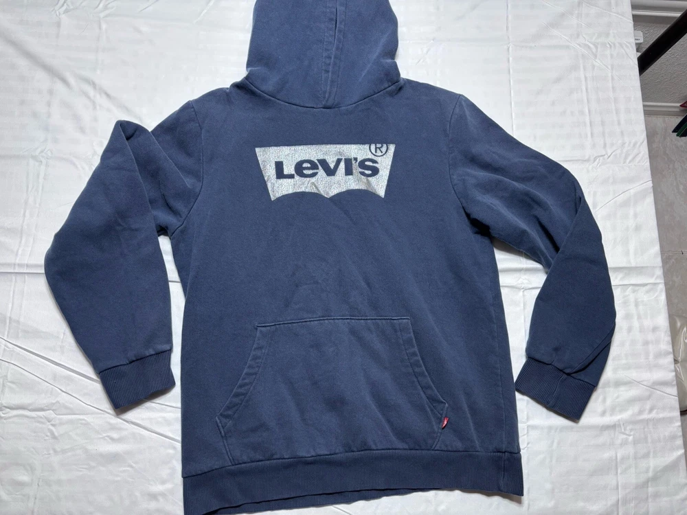 Levis Jeans Men's Hoodie Hooded Sweatshirt pullover Blue XL extra large. Pre owned shipped with usps ground advantage.