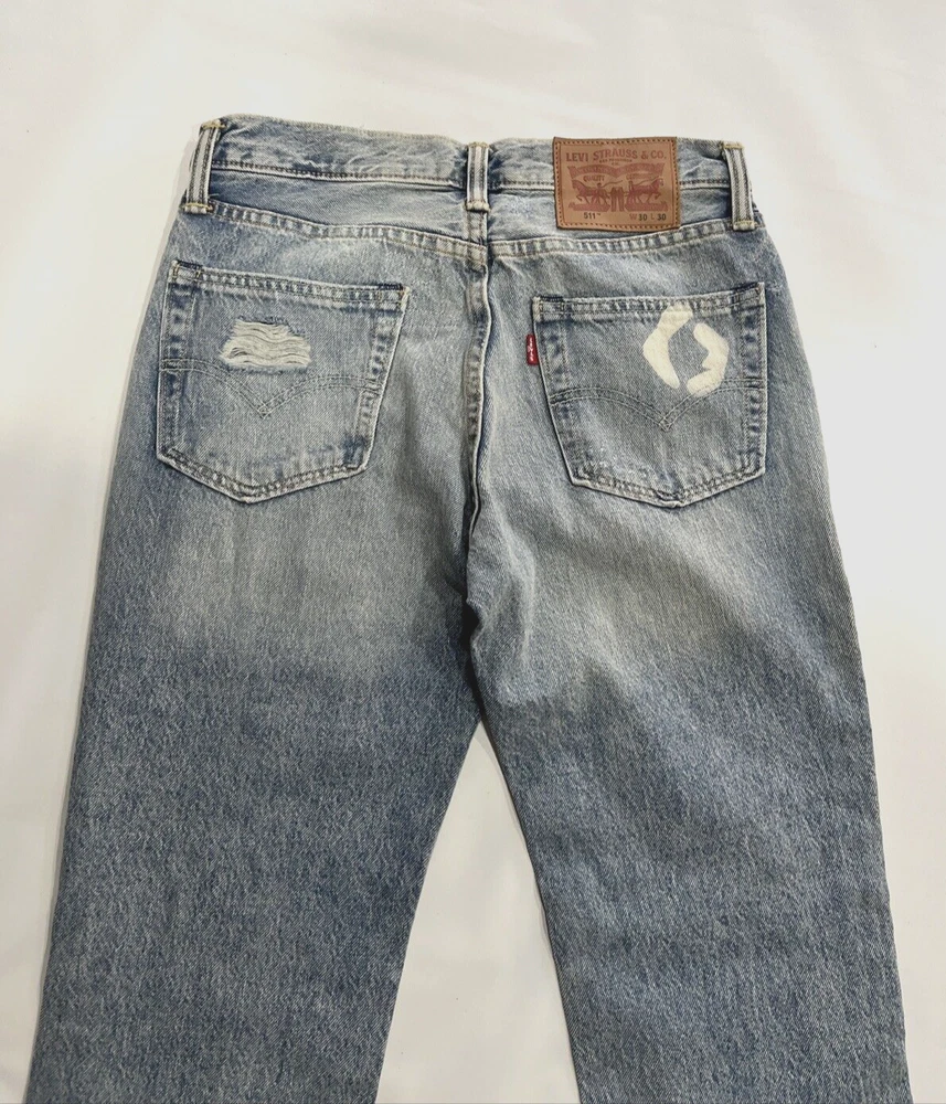 Levi's 511 men's Special Limited Edition Good Times Distressed Jeans size: 30 x 30 Rare special Limited Edition Jeans Cotton/ spandex blend "Good Times" monogrammed at the waist Designed to look worn and loved Rare limited edition J6780