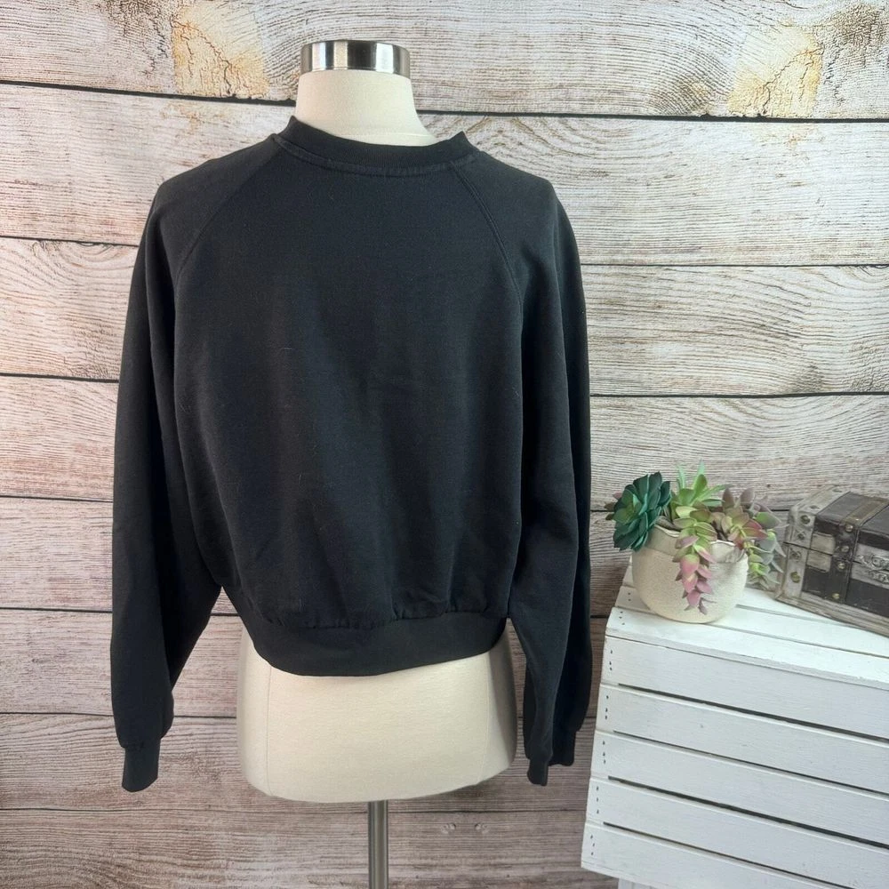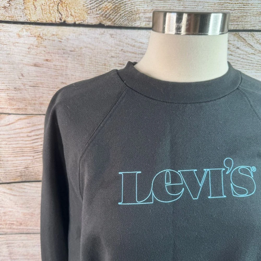 Levi's Logo Sweatshirt Women's Size S Black Crop Crew Neck Raglan Long Sleeve - Semi cropped - Pullover - Ribbed Trim