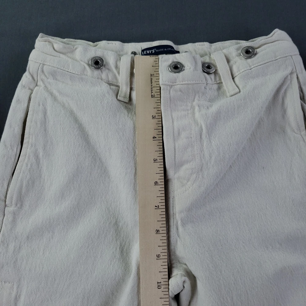 These Levi's Made & Crafted jeans are amazing! The white artillery style is so stylish and versatile, fitting perfectly with a 24x32 size. The denim feels high-quality, and the blue tab adds a cool vintage touch. They're in great condition—colors are still vibrant, and they've been cleaned well. Shipping was super fast, and the seller was responsive. Love these jeans—definitely worth it!