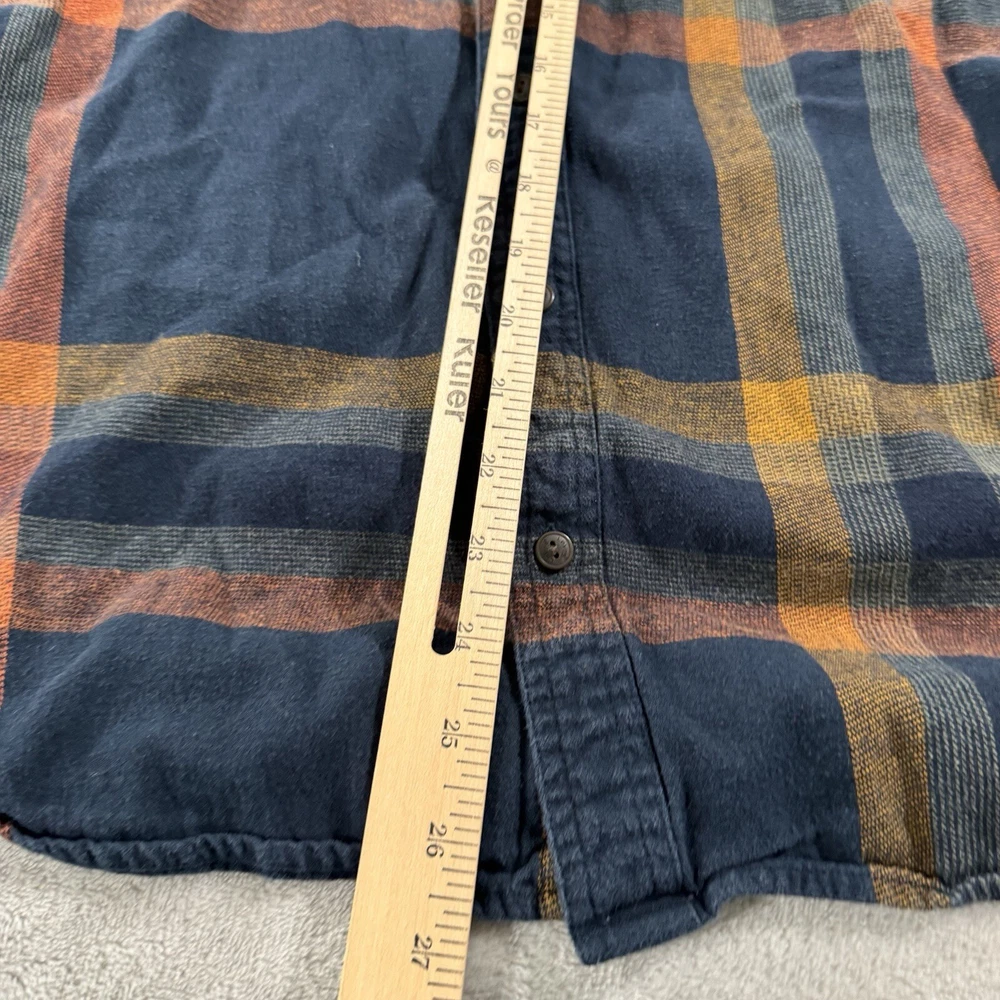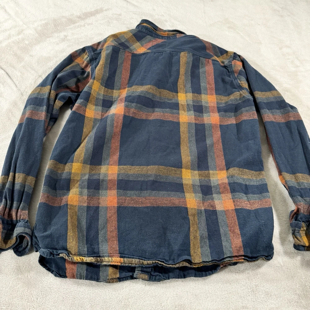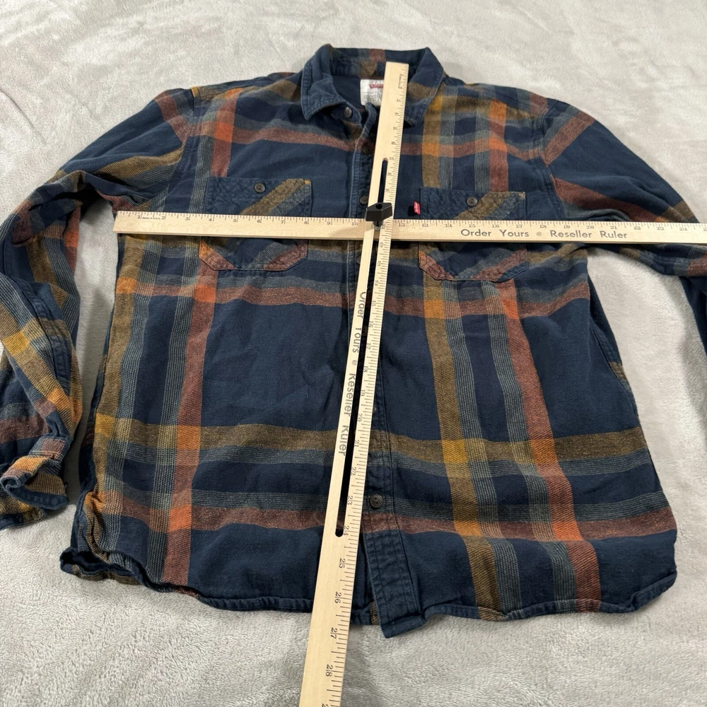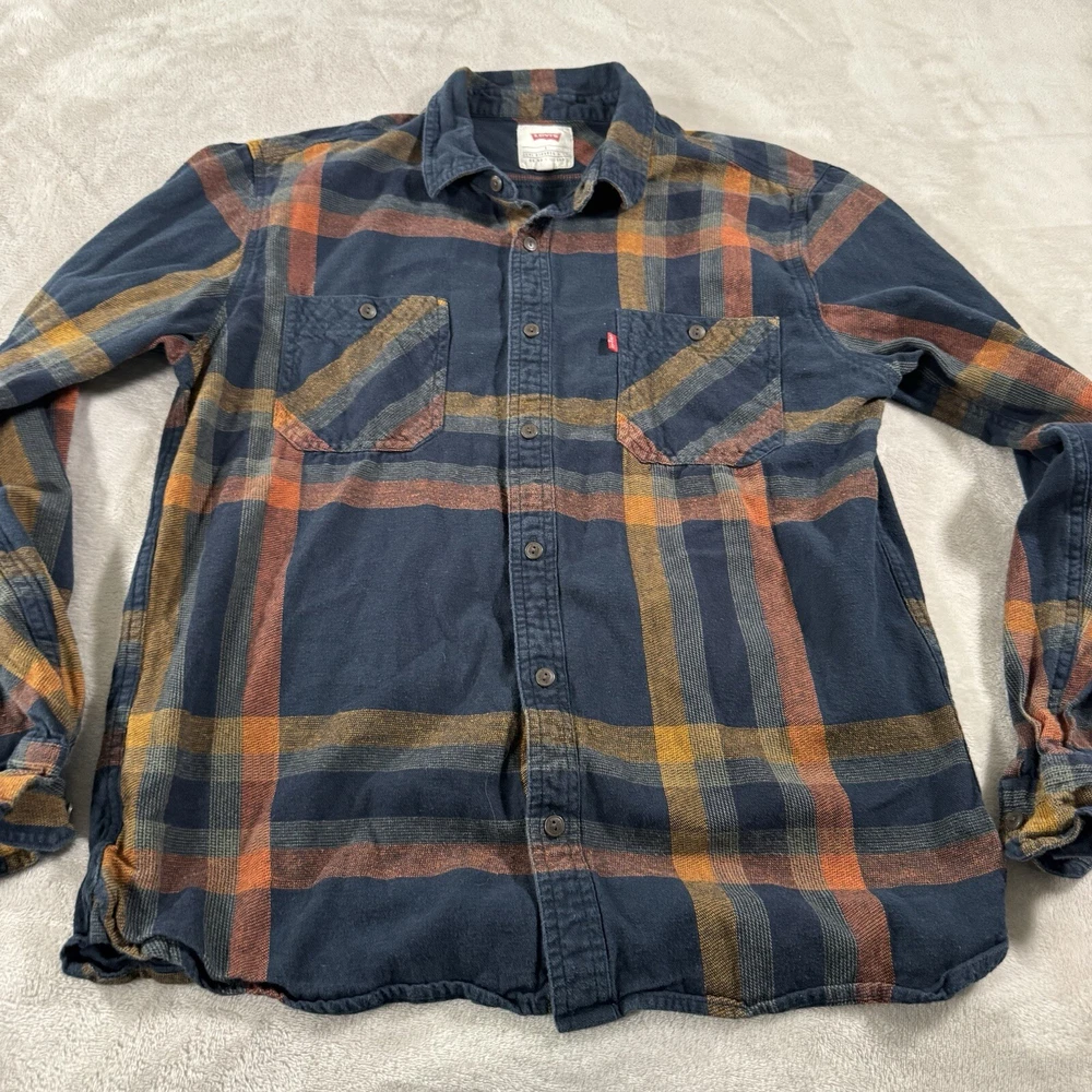 Elevate your casual style with this Levi's men's button-up shirt in a size Large. The brown and blue plaid pattern and button-down collar add a touch of classic charm to your wardrobe. Made from soft and breathable cotton flannel fabric, this shirt is perfect for any season, whether you're dressing up for a casual outing or layering it up for a chilly winter day. With handy features like pockets and button accents, this shirt is both functional and fashionable. Perfect for any occasion, this Levi's shirt is a must-have for any stylish man's collection.