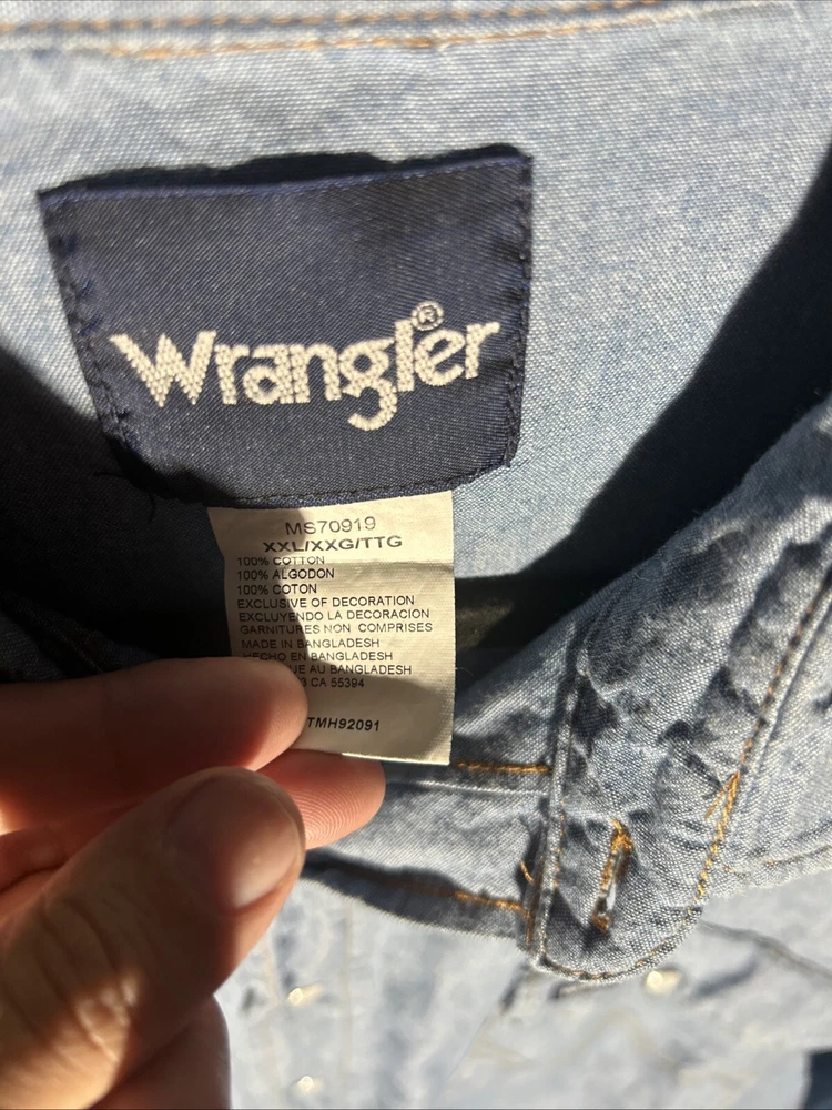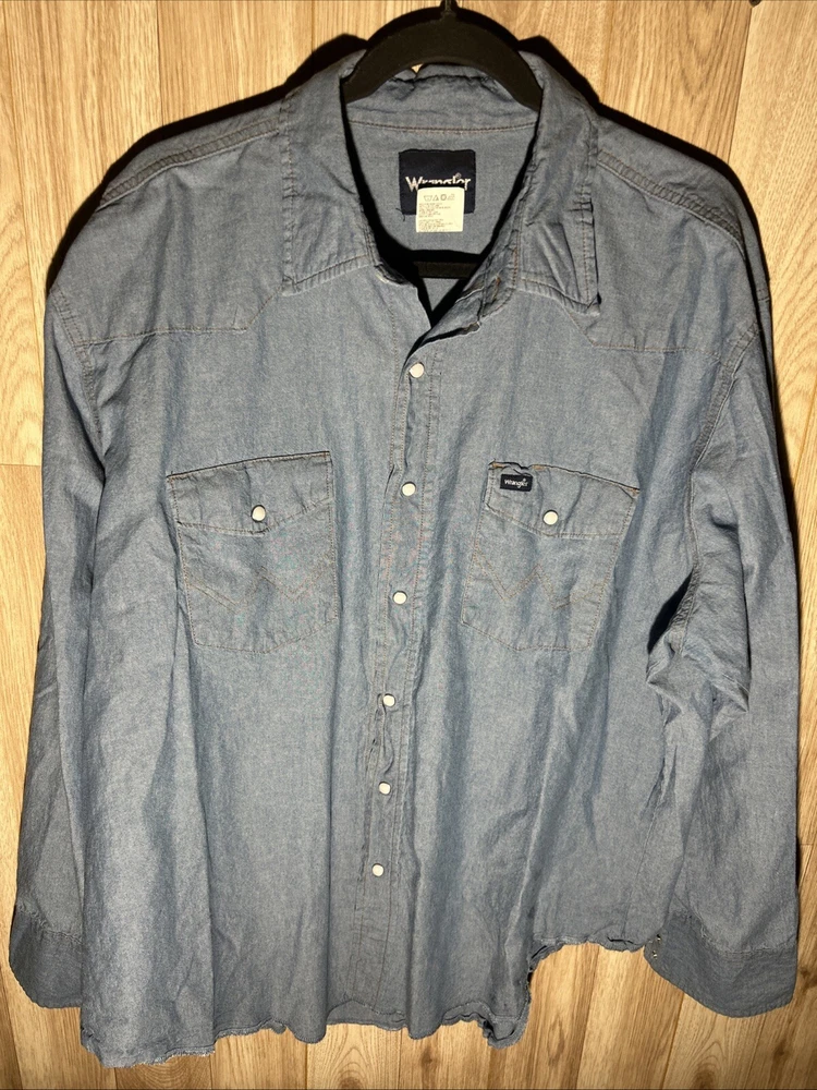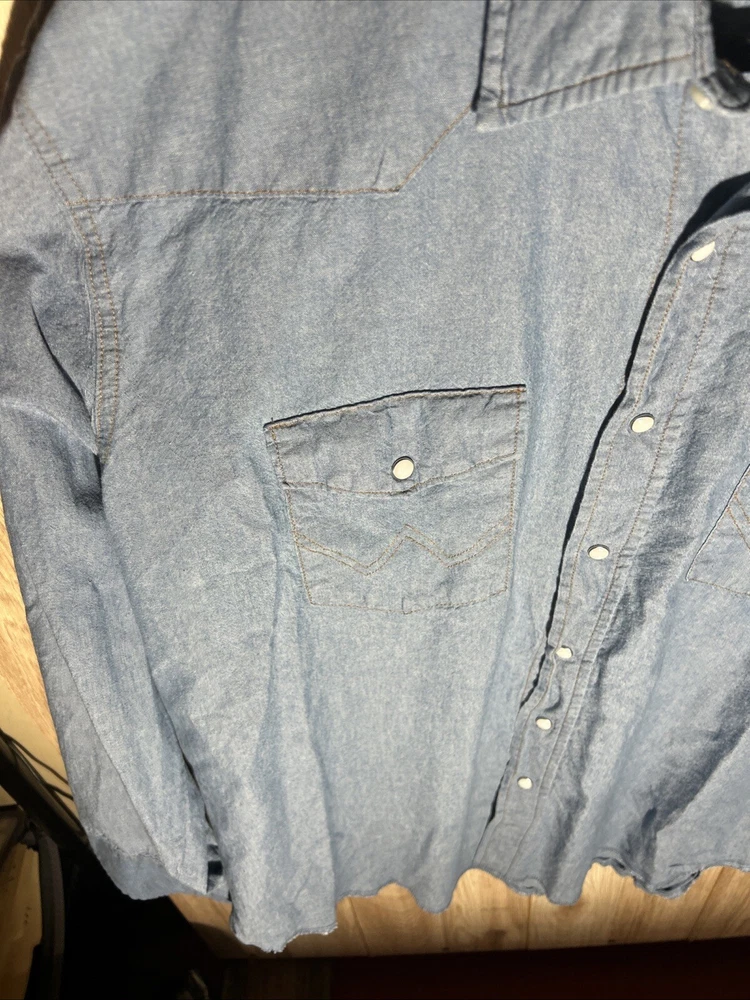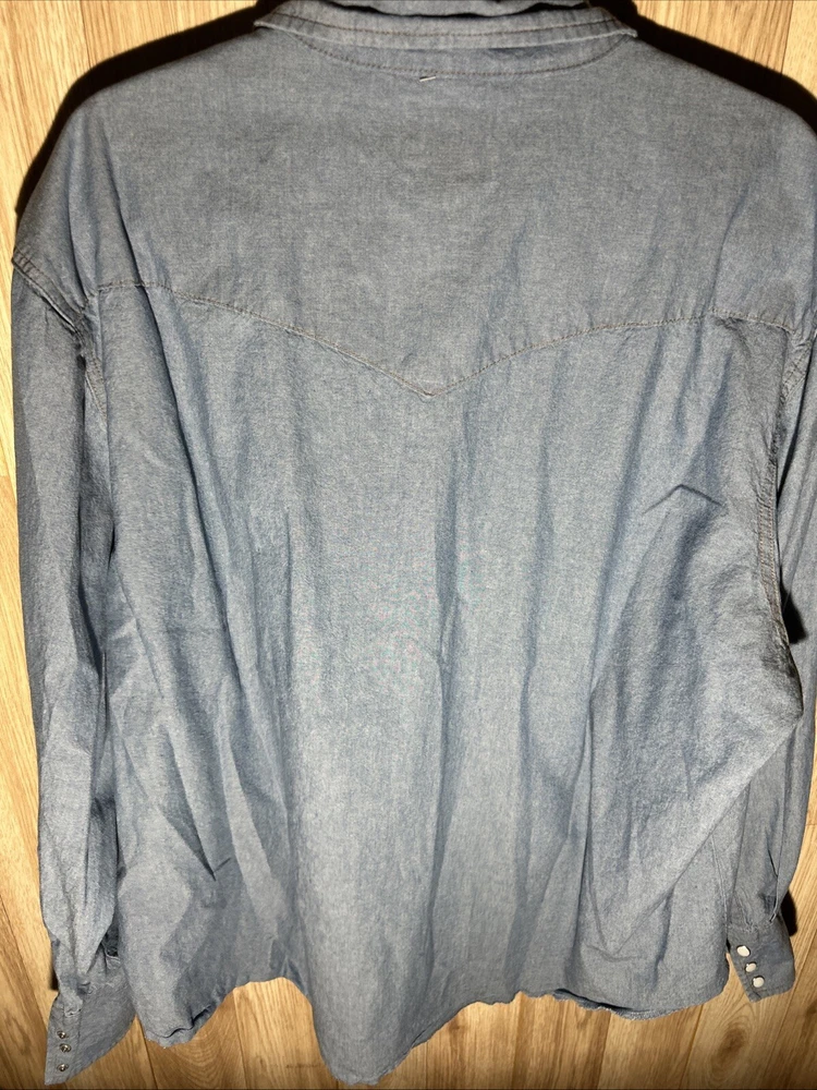 This Levi's men's denim shirt is a classic addition to any wardrobe. With its solid blue color and Western theme, it's perfect for any occasion. The shirt features pearl snap closures and long sleeves, making it a versatile piece for any season. Made with high-quality denim fabric, this shirt is built to last. It's available in a 2XL size, making it a comfortable fit for any man. Whether you're going for a casual or formal look, this Levi's denim shirt is the perfect choice.