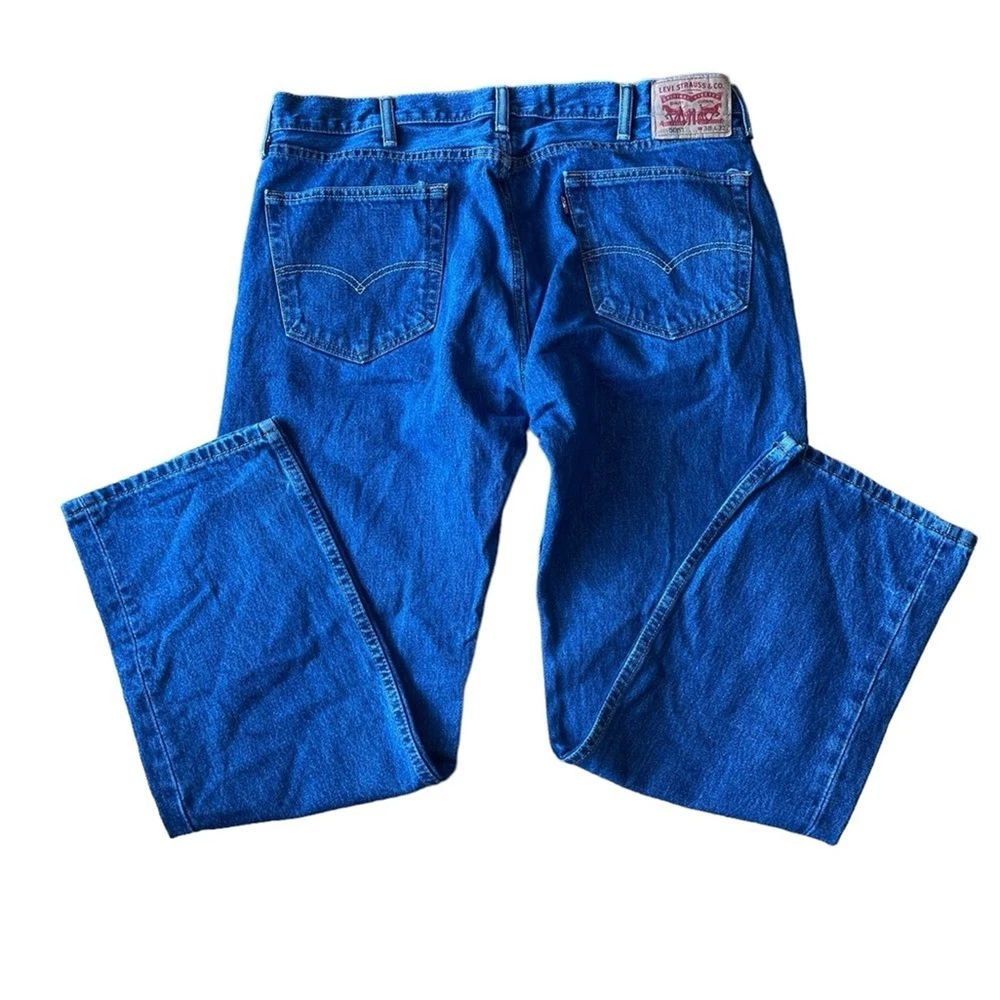 Levis Mens 505 Straight Leg Blue Jeans Size 38 Excellent condition No rips stains or thinning of material See photos for flat lay measurements. Inseam looks closer to 30 than 32