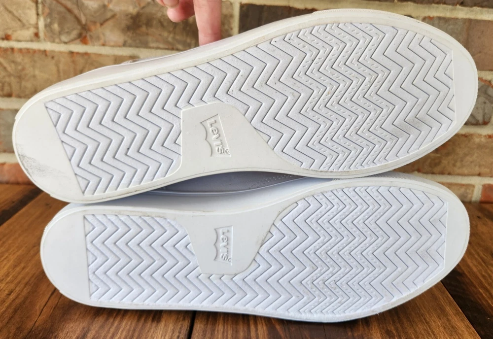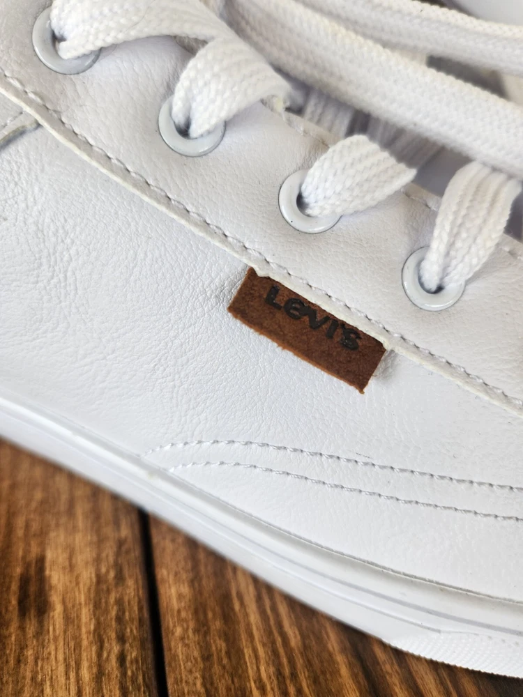 Elevate your casual look with these stylish Levi's Jeffrey-501-Tumbled-UL sneakers. Designed for men, these sneakers are perfect for any casual occasion. The white faux leather upper material gives the sneakers a trendy and sophisticated look, while the tumbled detailing adds a unique touch. With a US shoe size of 9.5, these sneakers are perfect for those who want both comfort and style. The low-top design allows for easy movement and the sneaker style makes them perfect for any activity. Whether you're running errands or going out with friends, these Levi's Jeffrey-501-Tumbled-UL sneakers will complete any outfit.