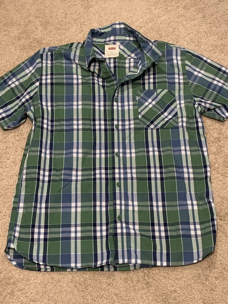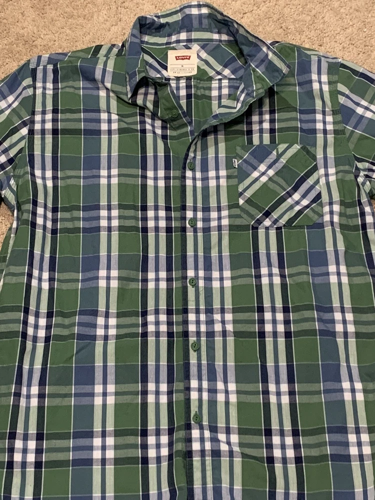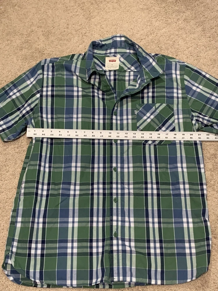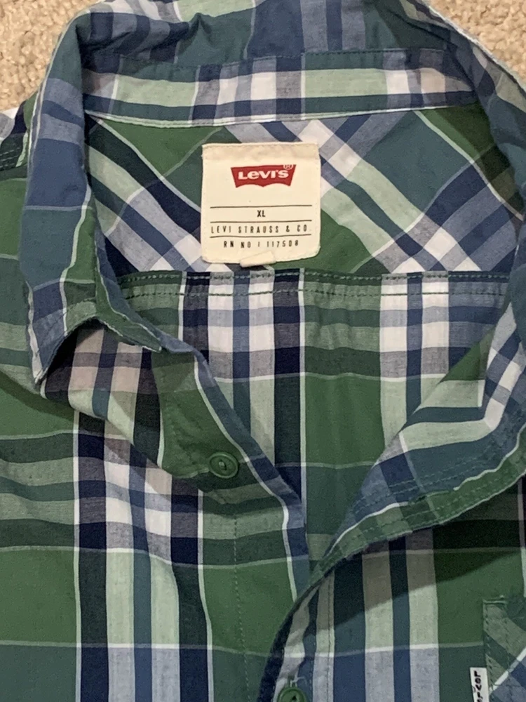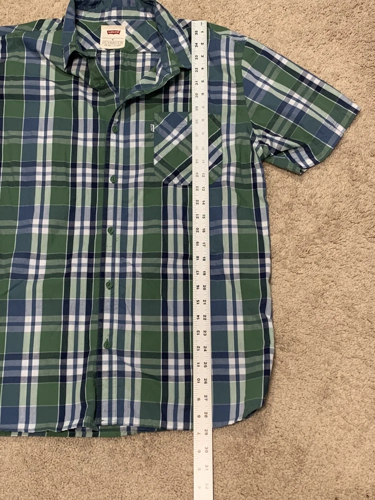 Clothing Description: Item is a pre-owned Levi's Men's shirt in good condition. Items are carefully inspected and sealed after photos. We cannot check additional measurements or details for you. Please note, item measurements are approximate and in the photos. Previous washings may change the sizing. Please compare our measurement photos to your favorite garments to ensure fit. Colors remain vivid, we store our items in a smoke free environment If the item is pre-owned, it's cleaned per eBay standards. We do not use any freshener or scents. Shipping and Return Details We ship daily so that you receive your item quickly. We have a 30 day return policy. Please let me know if you are interested in combine shipping for multiple purchases. Please feel free to ask any questions you may and we will try our best to answer as quickly as possible.