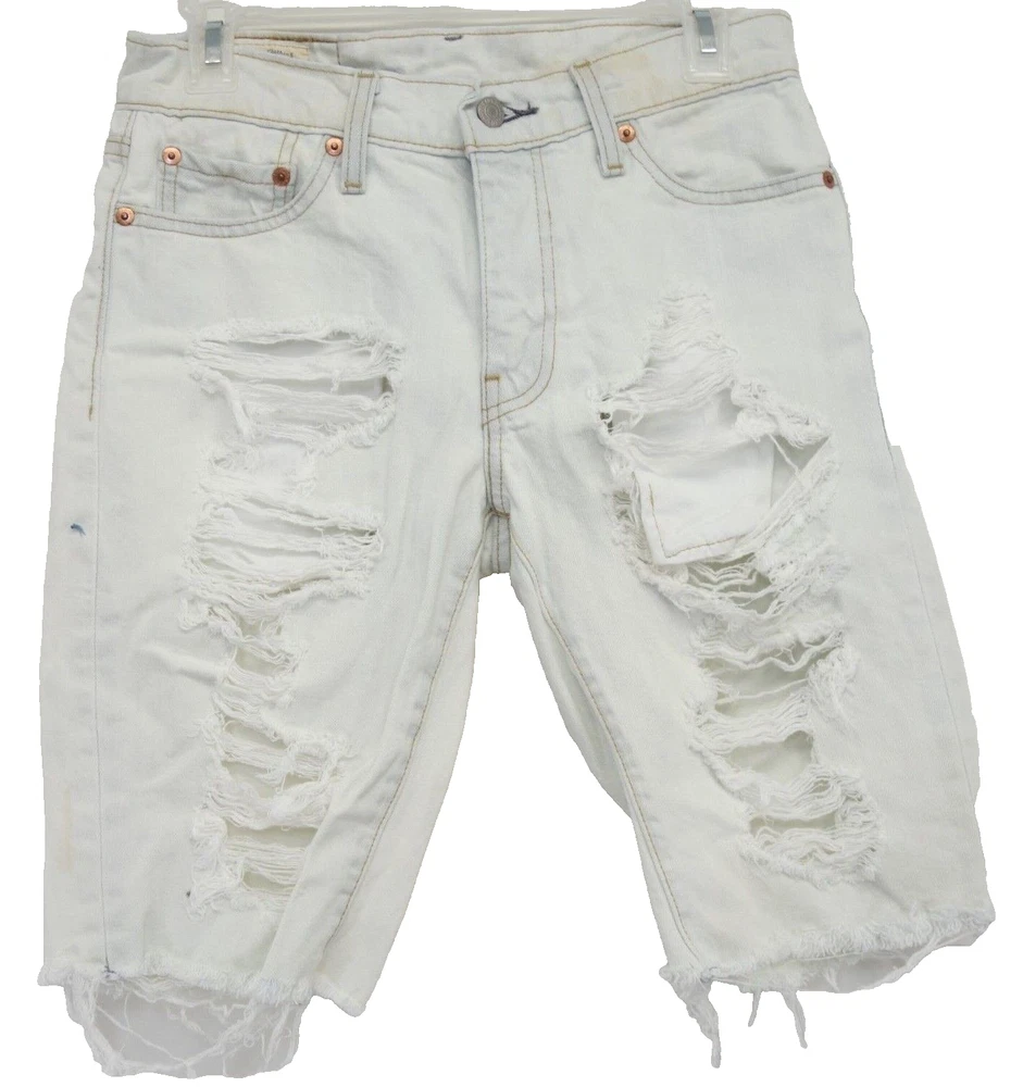 New Levi's Mens Size: 29 x 11.5" Lot 511 Ripped Cut Off Slim Fit Skate Summer Denim Shorts This pair of shorts has stains due to warehouse storage, please see photos for details. Modern slim-fit shorts with room to move Right amount of stretch for mobility Ripped and distressed shorts Made with our sustainable Water