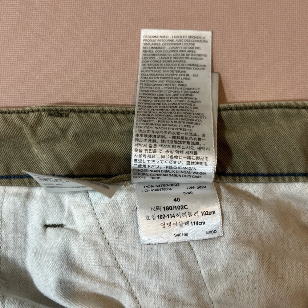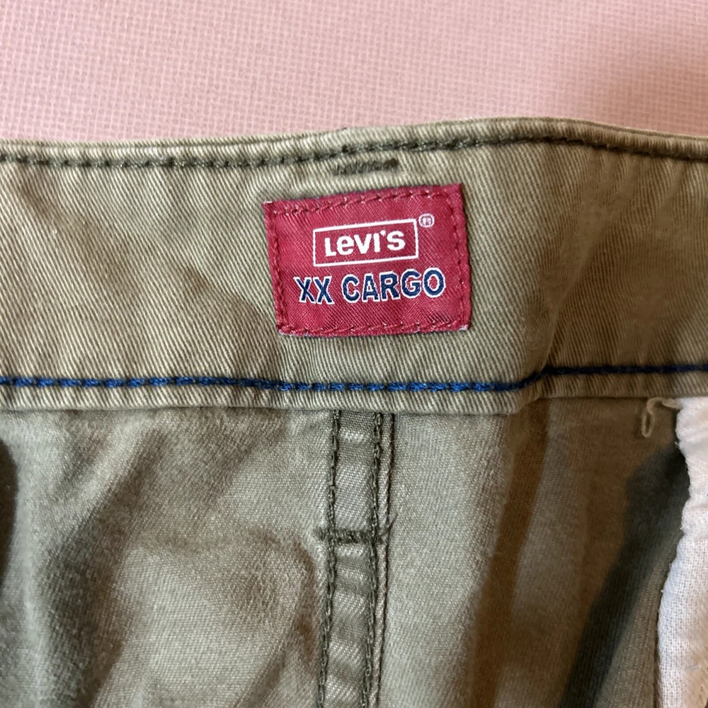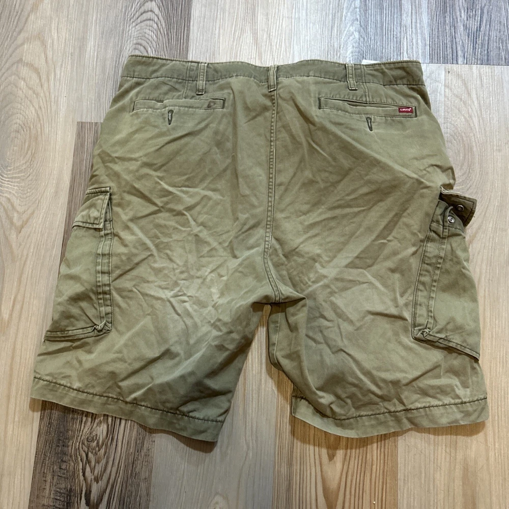 UPC:Does not applySize Type:RegularTheme:90sDepartment:MenClosure:Zipgtin13:Does not applyAccents:LogoStyle:CargoSize:40Inseam:10 inPattern:SolidMaterial:100% COTTONFabric Type:CHINOColor:OliveBrand:Levi'sFit:LOOSEPocket Type:Cargo PocketWaist Size:40 in