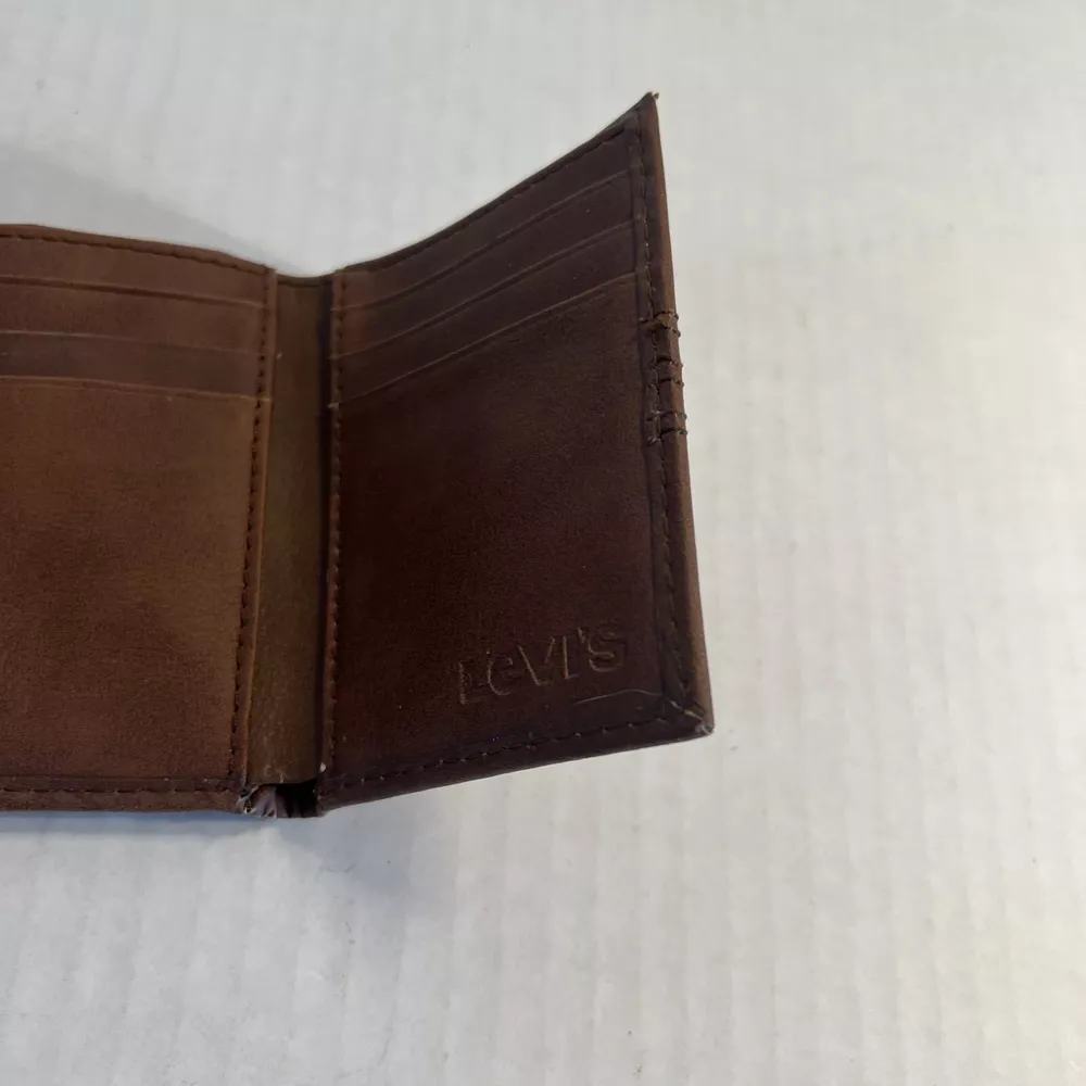 Handmade:NoColor:BrownDepartment:Mengtin13:026217255767Type:WalletPersonalize:NoCountry/Region of Manufacture:IndiaVintage:NoStyle:TrifoldBrand:Levi'sPattern:SolidUPC:026217255767Features:Credit Card, RFID Blocking, Photo HolderMaterial:Leather