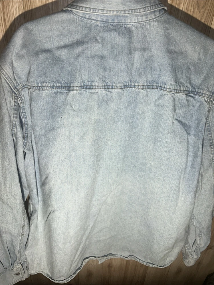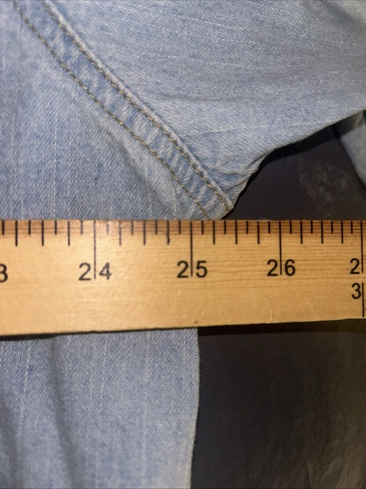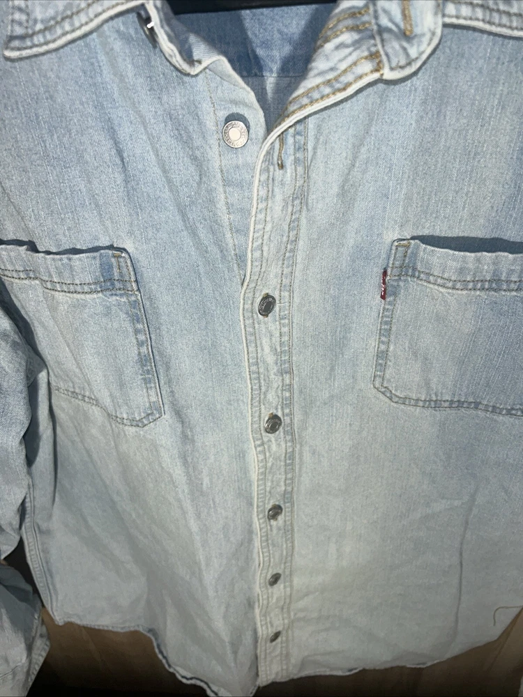 This Levi's men's denim shirt in size XL is a classic addition to any wardrobe. The blue shirt features metal buttons and long sleeves, perfect for any occasion. The shirt is made of high-quality denim fabric that is both durable and comfortable to wear. The solid pattern and regular size type make it a versatile choice for any man's wardrobe. This button-up shirt is perfect for casual events or can be dressed up for a night out. Add this Levi's denim shirt to your collection today!