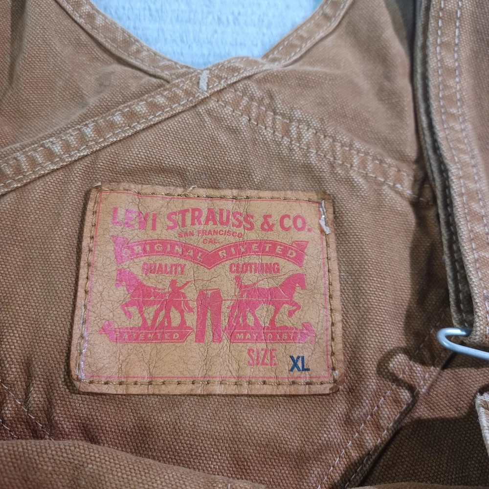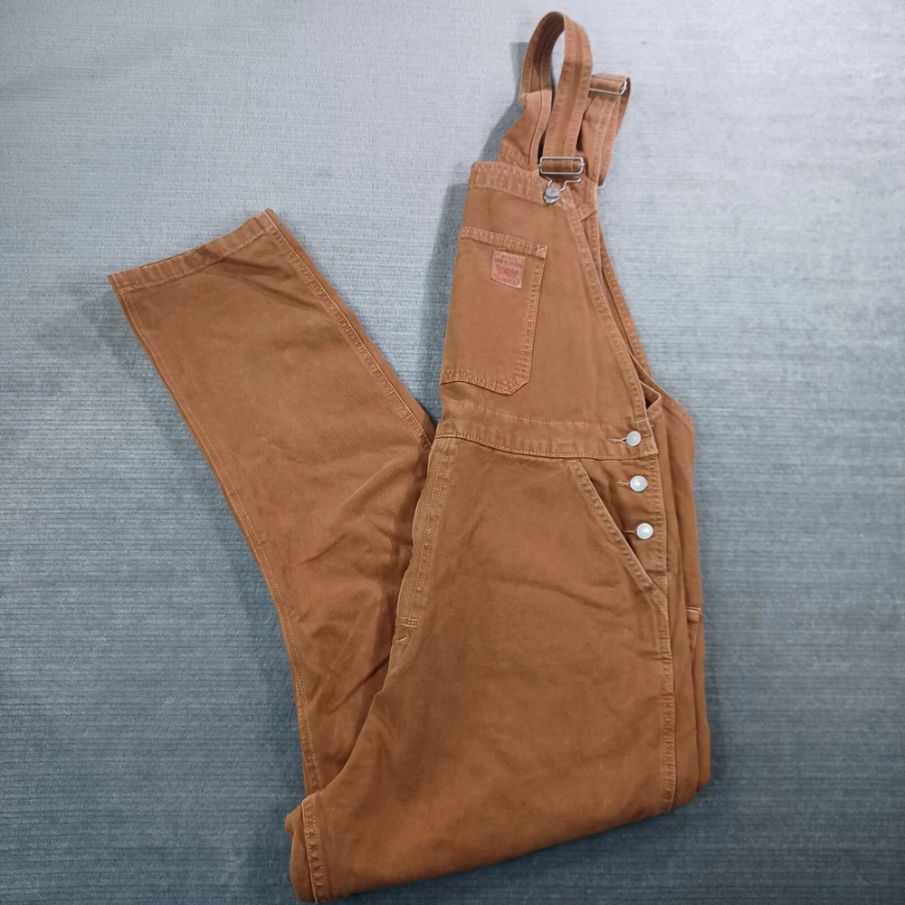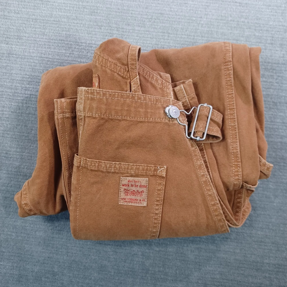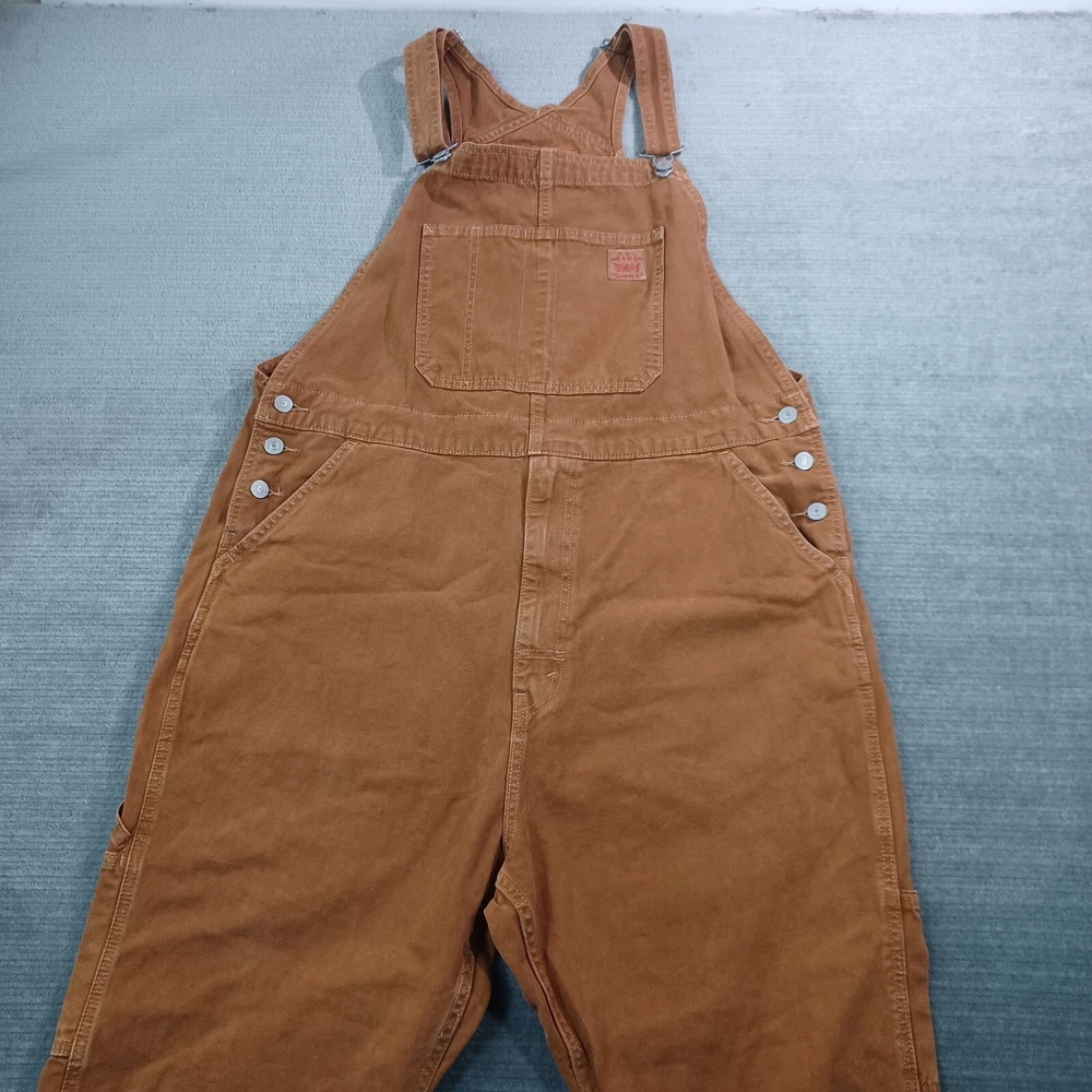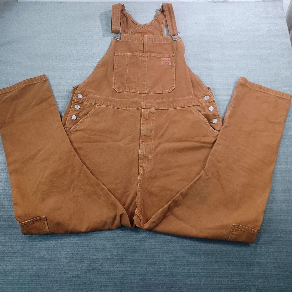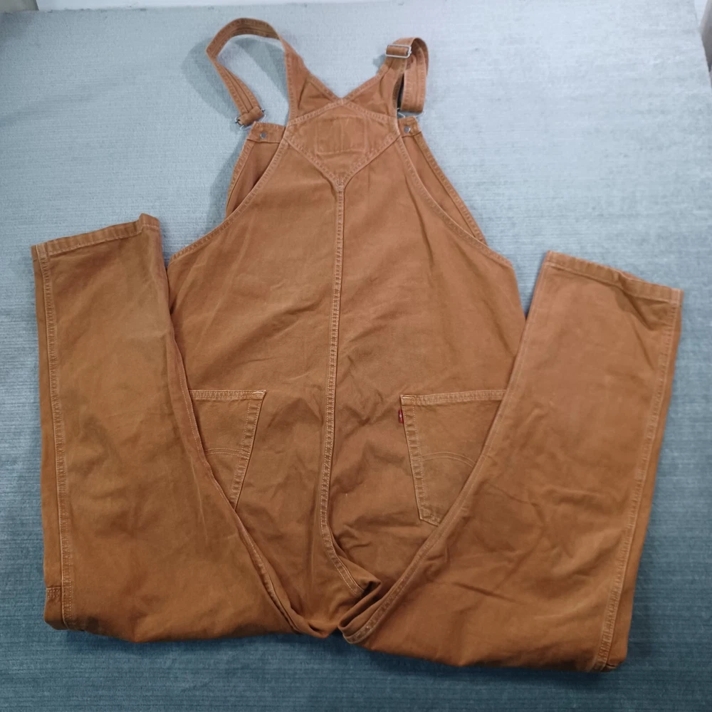 Levis Overalls Mens XL Burnt Orange Straight Leg Adjustable Length Worker Farmer Great pre-owned condition, no flaws Please review all photos for details and measurements.