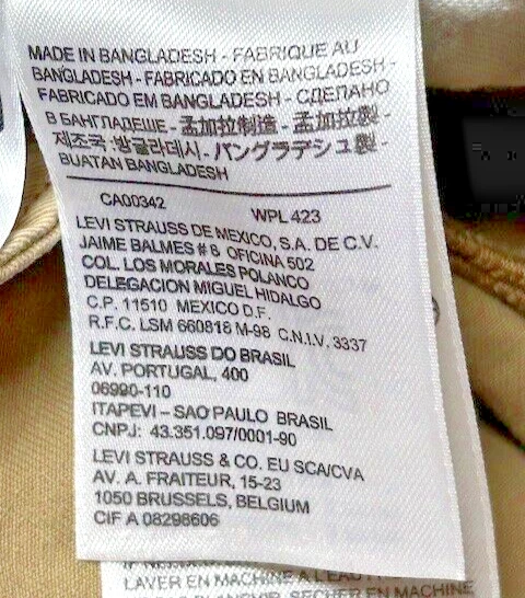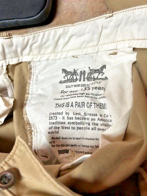 Levis Pants Mens Size 38x32 Khaki Chino Tan Straight Fit White Tab Casual Work