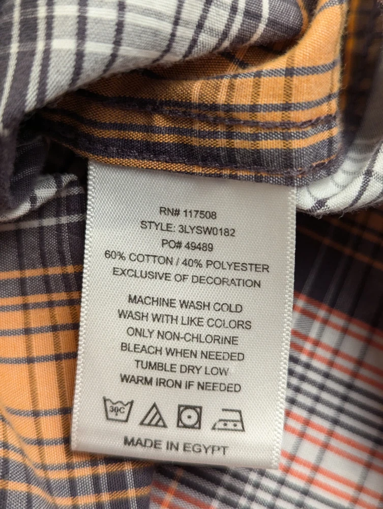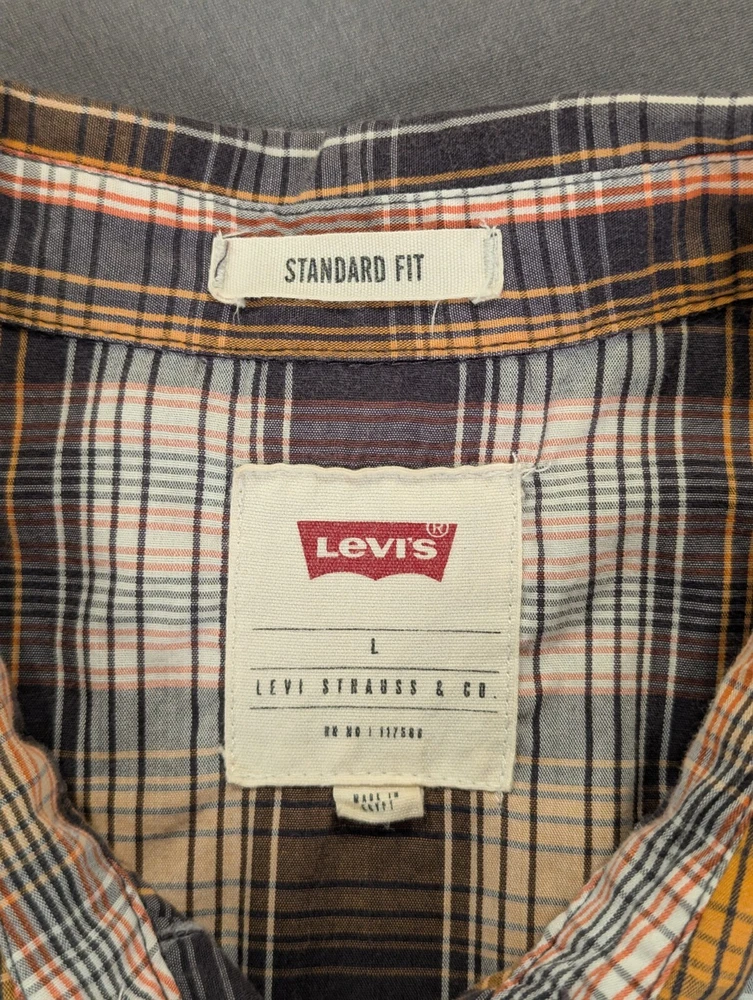 Size Type: Regular Sleeve Length: Short Sleeve Fabric Type: Woven Vintage: No Features: All Seasons, Easy Care, Pockets Handmade: No Fit: Regular Seller Notes: “Excellent” Closure: Snap Type: Button-Up Personalize: No Brand: Levi's Pattern: Plaid Neckline: Collared Accents: Button Department: Men Garment Care: Machine Washable Season: Fall, Spring, Summer, Winter Color: Multicolor Material: Cotton Blend Size: L Chest Size: 45 in