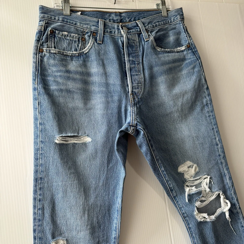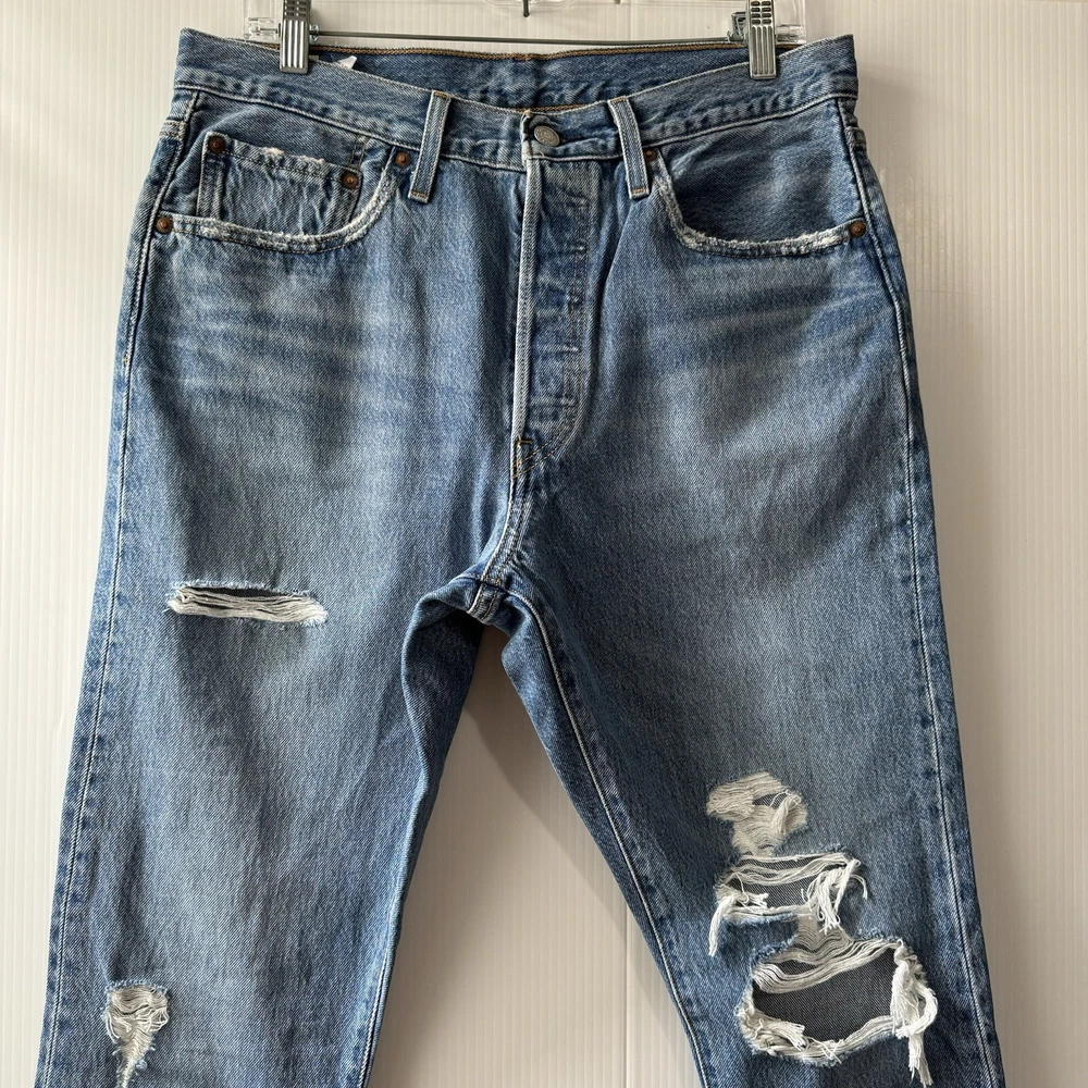 Levis Premium Jeans 501 Mens W31 L 30 Distroyed Medium Wash Button Fly Please see all photos Used good condition Sz 31X30 Blue Note: please take into account the measurements in the photos, they are approximations, you must be sure of your sizes. Please view all photos carefully before making any purchase. Shipments are made the same or next day on business days. Any questions please ask